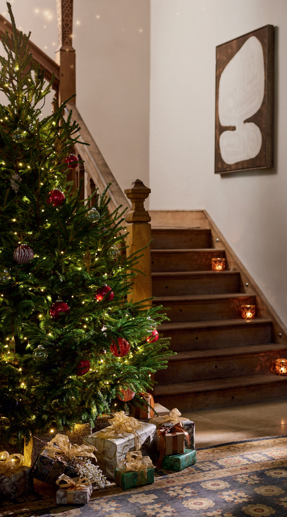 If Santa and sequins aren’t your bag, a more modern Christmas colour palette may be on the cards. In this instance, we’d encourage you to channel the cosy, inviting nature of the season instead, with a pared-back palette of darker tones that invite you to settle down and make yourself comfortable. Think deep charcoal, forest green and navy blue, tempered with monochrome accents and the warming glow of candles and lamplight. To create an inviting look, be sure to mix plenty of tactile textures – rich velvet, rustic linen and glossy ceramics will create a layered and welcoming effect. When it comes to your Christmas tree, we’d recommend simply sticking with fairy lights and a few metallic ornaments to add warmth to the space. Think of it as a festive take on the quiet luxury trend – a subtle nod to the season in an oh-so sophisticated way.