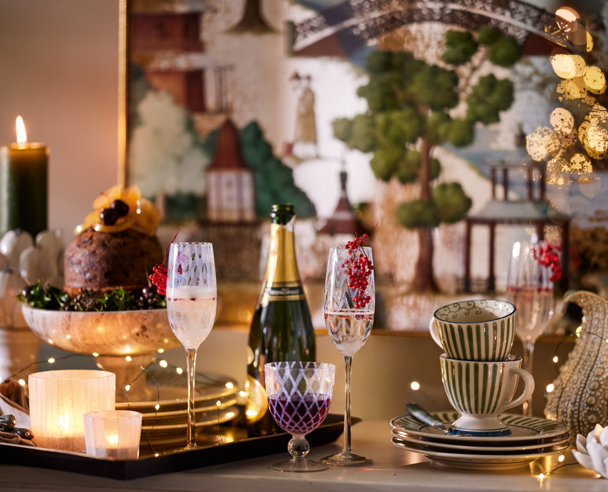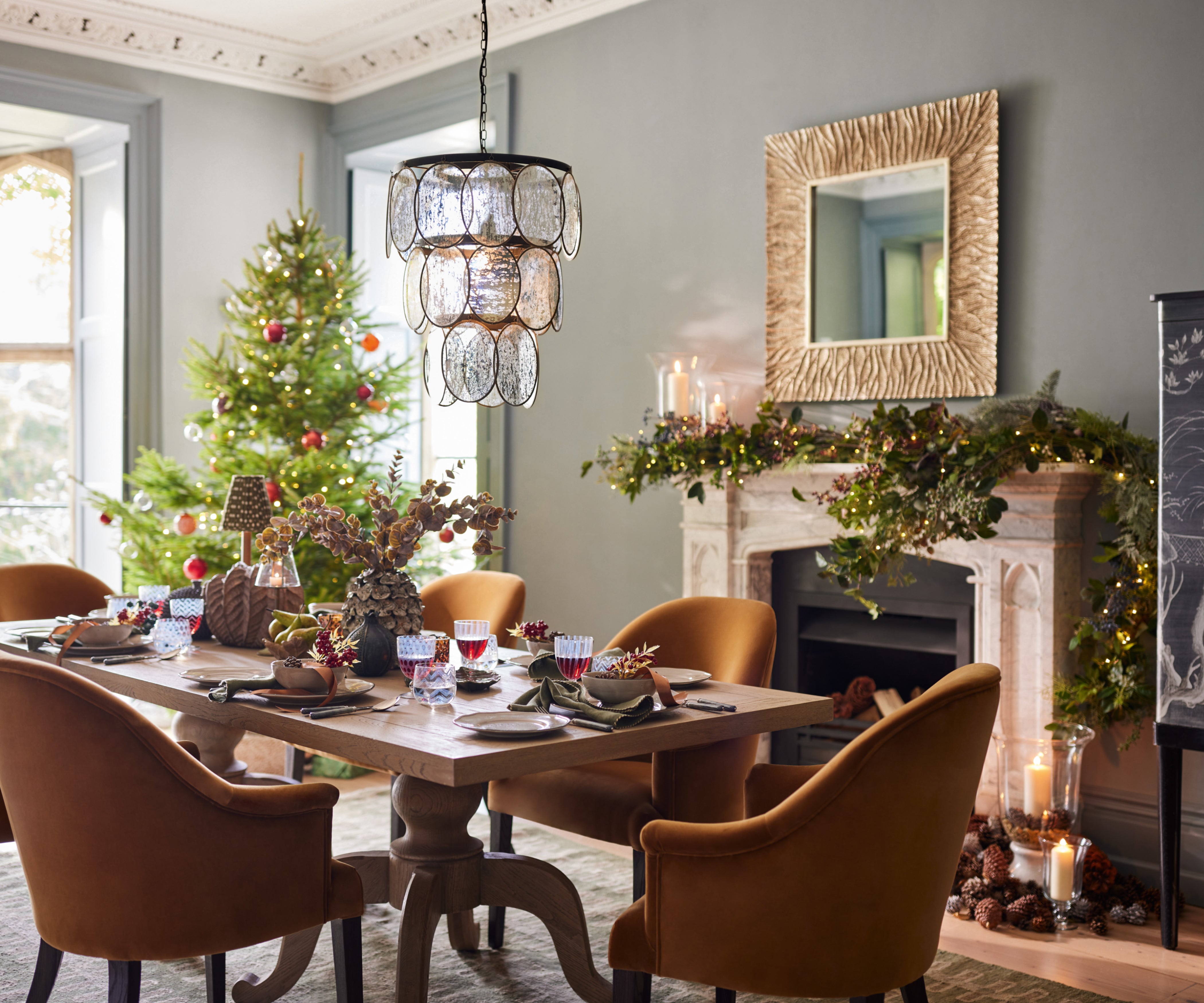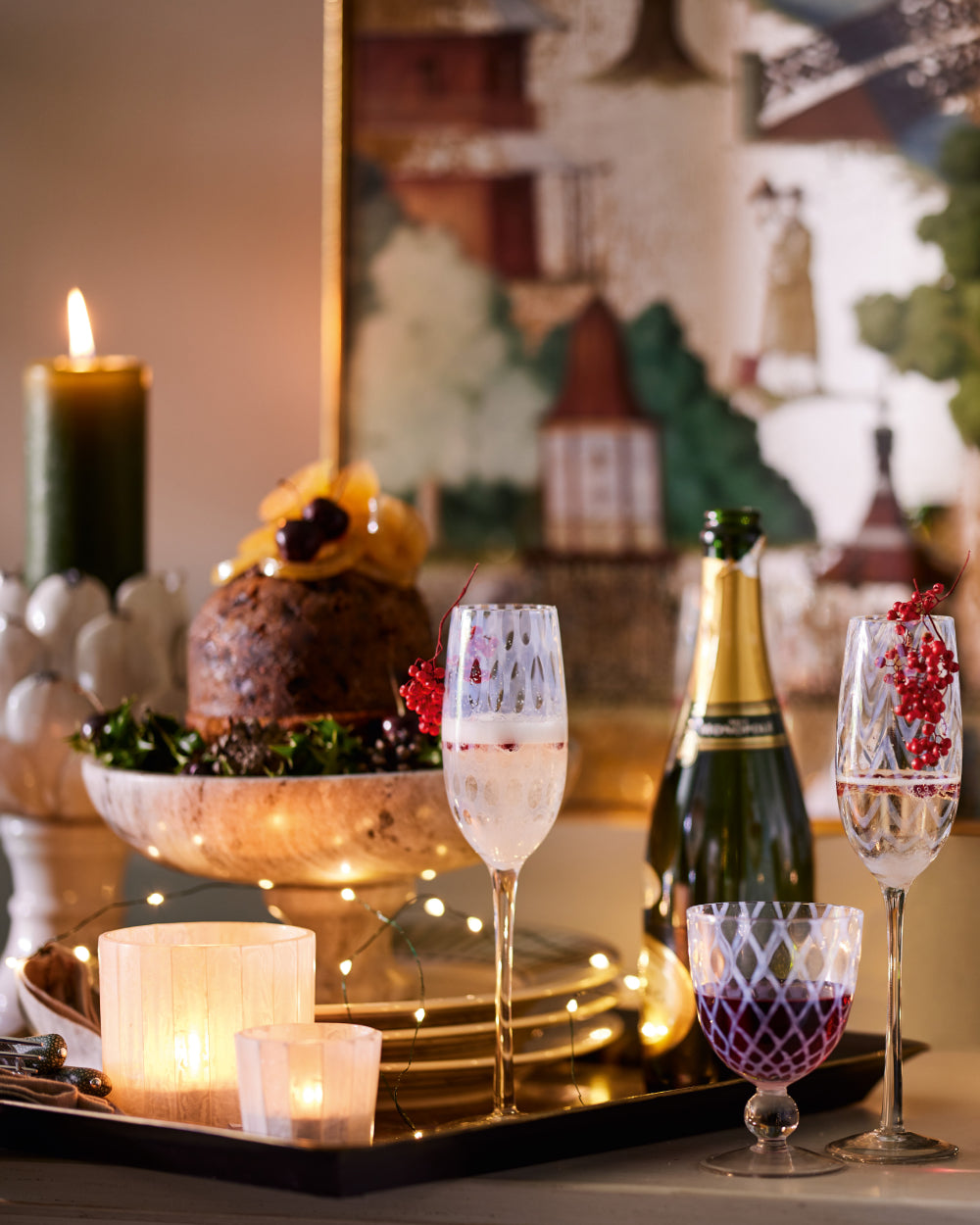 Go big and bold with colours you already have in your home. After all, at OKA we advocate for timeless design and reusing decorations for Christmas and beyond, year on year. As previously mentioned, there’s something to be said for balancing out the elevated with the everyday, but what about elevating the everyday itself? If your room is filled with accents of purple, think colour drenching and allow yourself to go whimsical and wild with even more of the damson shade: hang streamers and paper decorations in aubergine, arrange faux sprigs of mauve cosmos, set violet-hued taper candles in artichoke candle holders… This is your chance to be inventive and unique and this can be done with whatever the colour palette of your interiors. Packing in the décor will ensure that your rooms look embellished from the norm.