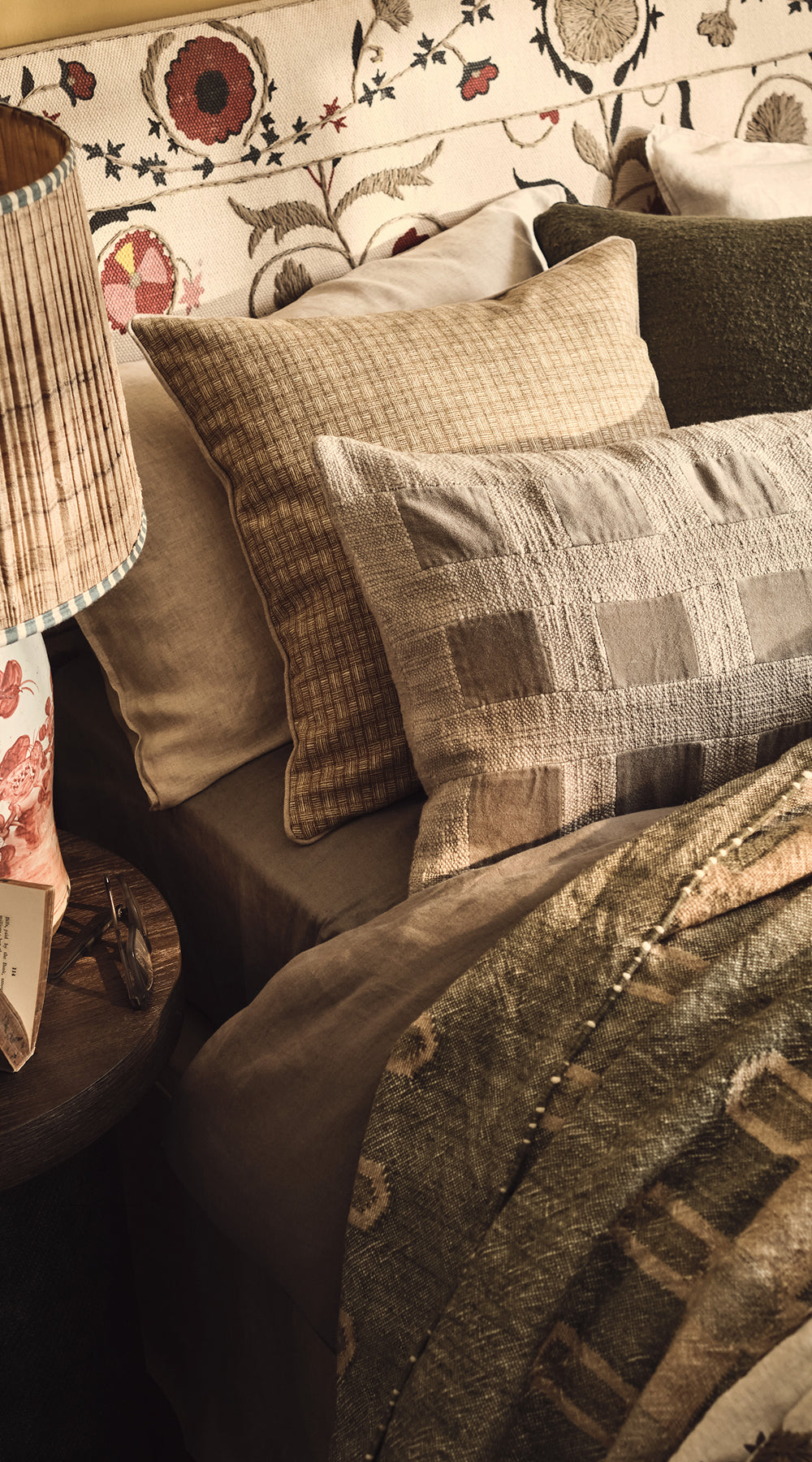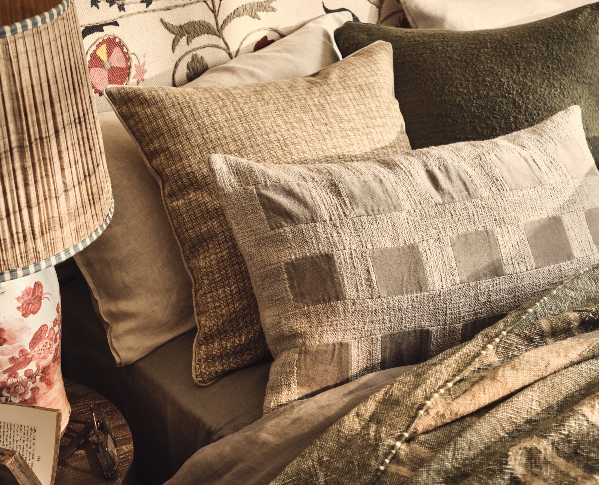A riot of prints jammed together on a sofa, chair or bed can make a space feel overcrowded. Calm the chaos by selecting two or three cushions in your favourite patterns and layer them with simple block colour or neutral styles in complementing shades. When it comes to pairing different prints, team small-scale patterns with larger-scale designs; this will make your arrangement easier on the eye and give each cushion the chance to shine. To add subtle points of interest, place louder prints or colours behind simpler styles. “Don’t let two cushions take over – you’ve got to layer your arrangement,” explains OKA Interior Designer Antoni Roig. “Put bolder cushions at the back to suggest a hint of pattern, rather than making it immediately obvious that it’s there.”