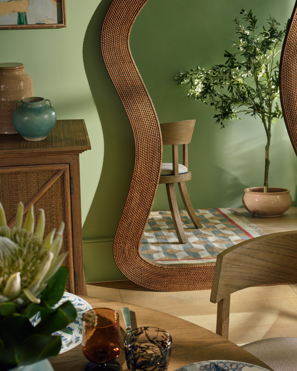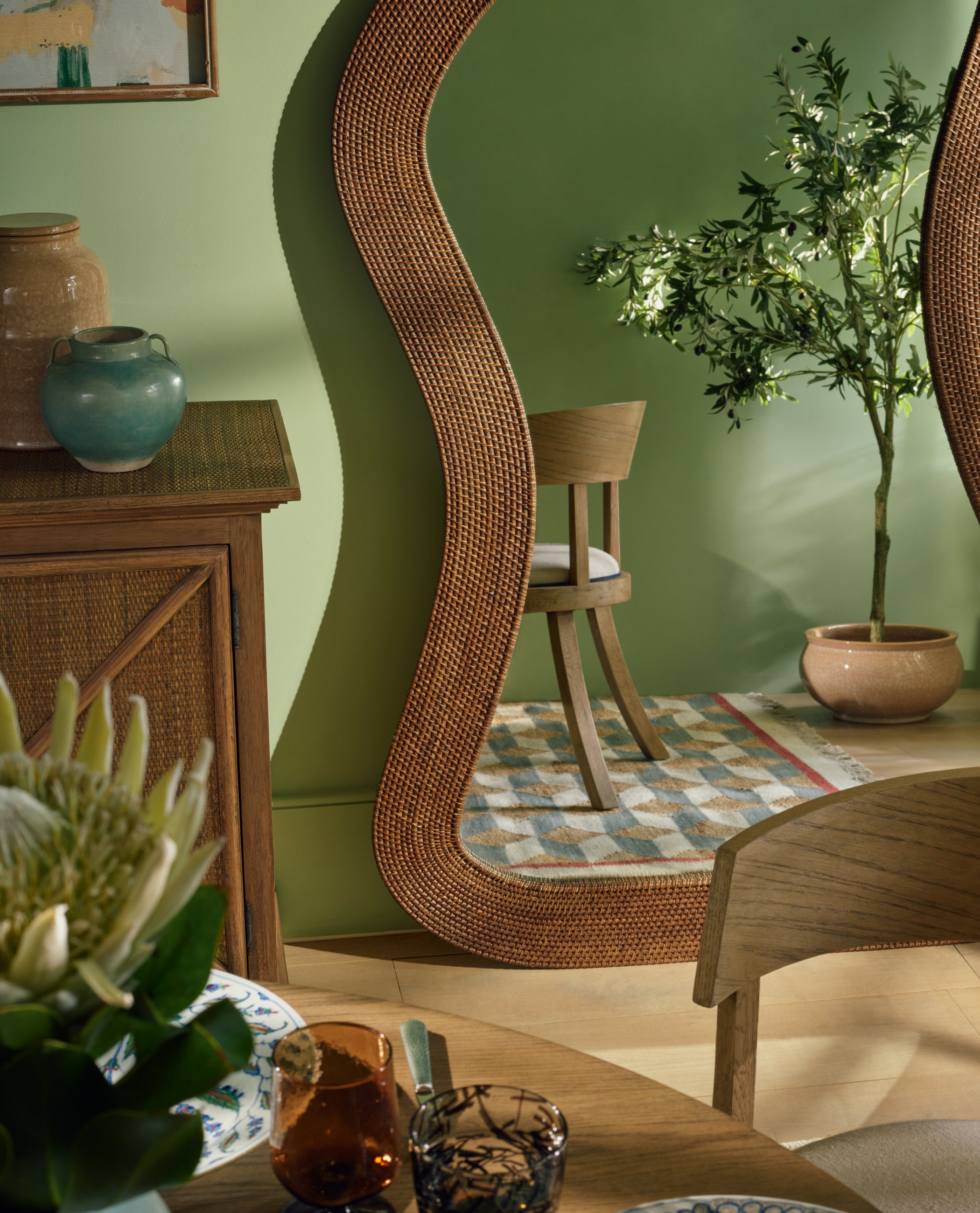 Placement and positioning are open to interpretation, too. Experiment, for example, by hanging a vertical mirror horizontally behind a bed, in place of a headboard. This is both surprising and impactful. And why not try framing a view? When used in pairs either side of a window or doorway, mirrors create a sense of balance and harmony, reflecting the opposite side of the room front to back, as well as left to right.