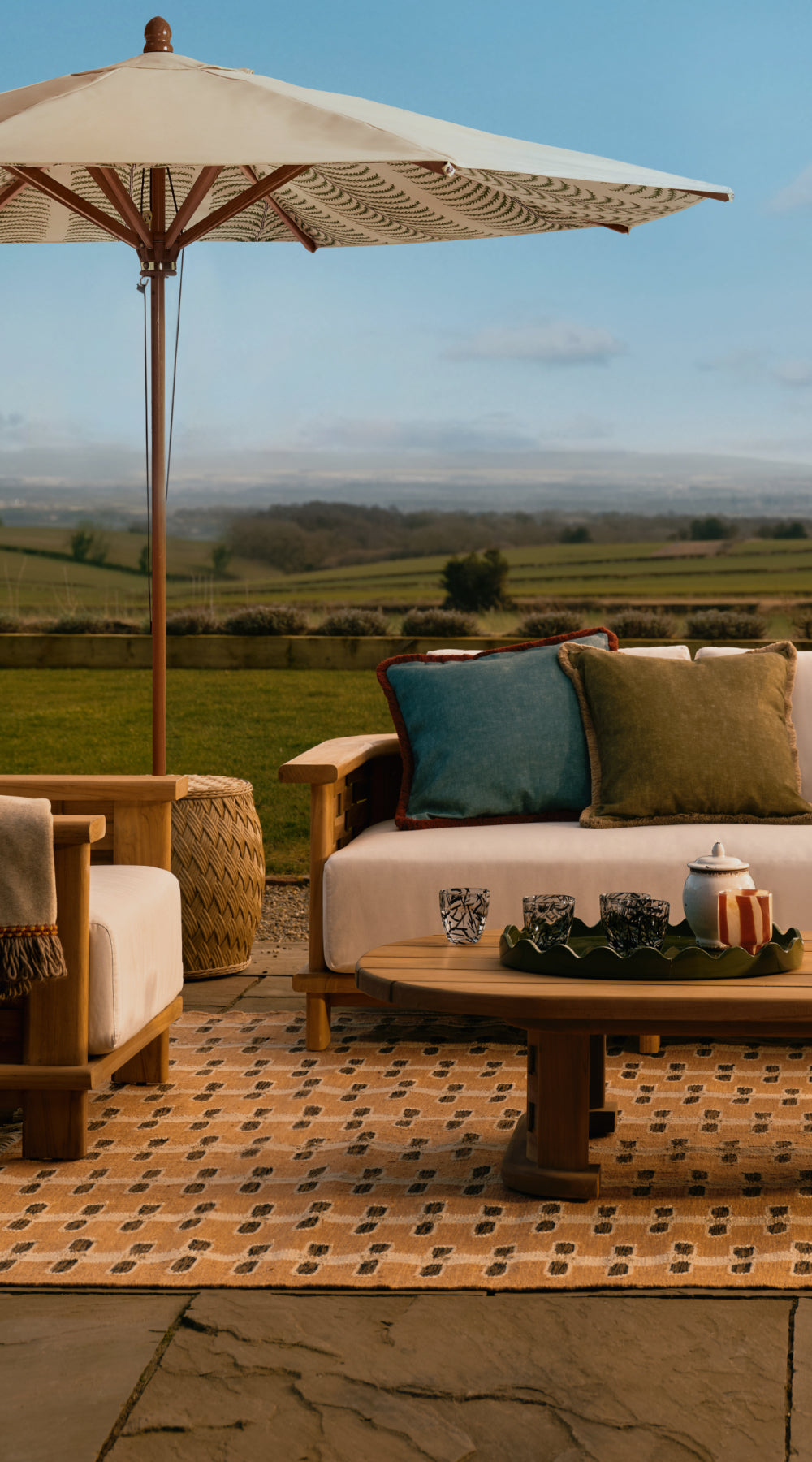 This being a British summer, a heatwave or downpour could strike at any moment, so ensure you factor in the weather when planning. “It can be a bit of a battle between trying to stay cool and wanting to sit outside on particularly hot days,” says Sue, “so a source of shade in a pretty parasol or two is essential for shady reprieve.”