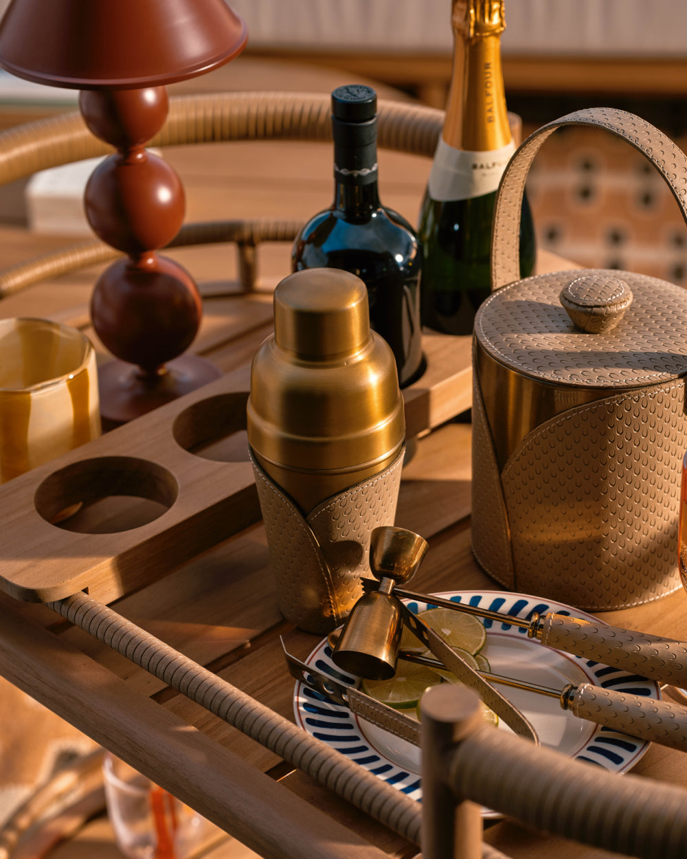 For effortless entertaining, set up a DIY spritz station on an outdoor table or console laden with glassware, spirits, mixers and garnishes for guests to help themselves. Says Sue: “My husband likes making cocktails like Aperol or limoncello spritzes, but I don’t, so make sure your station has easy alternatives such as rosé wine as well as pitchers of pre-mixed concoctions such as sangria or Pimm’s.” She adds: “Don’t forget to offer something non-alcoholic for those driving or simply choosing not to drink.”