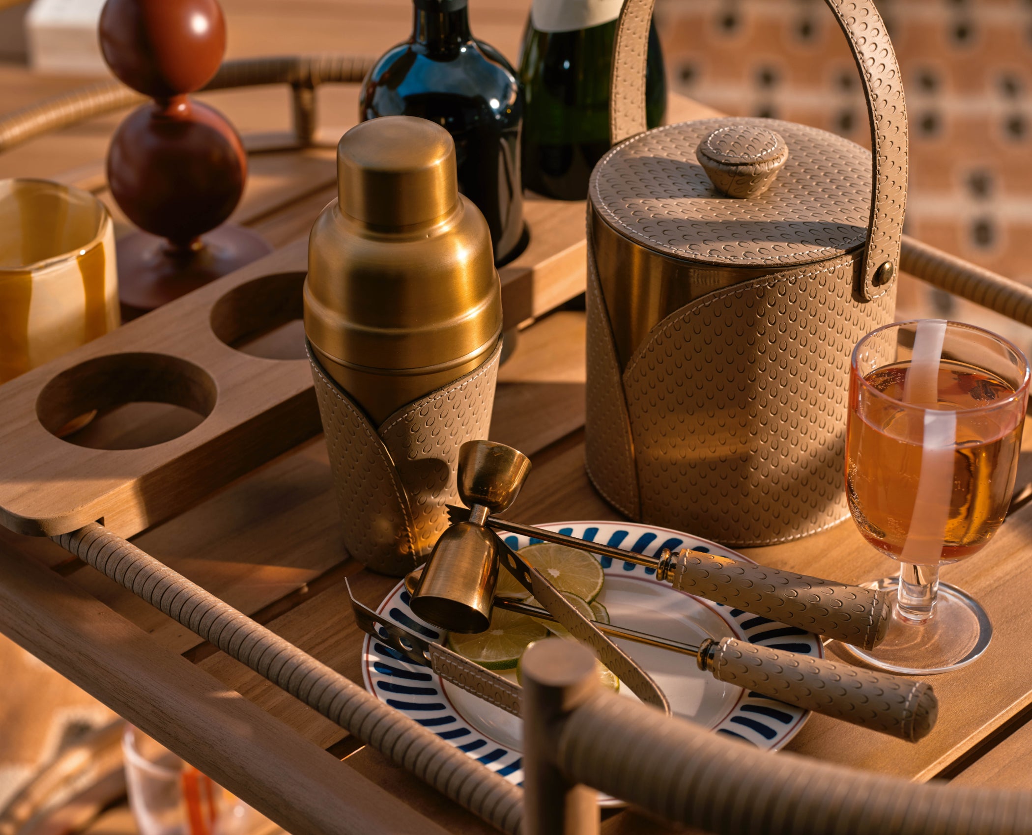 Emsworth Leather Bar Utensils - Set of Three - Taupe