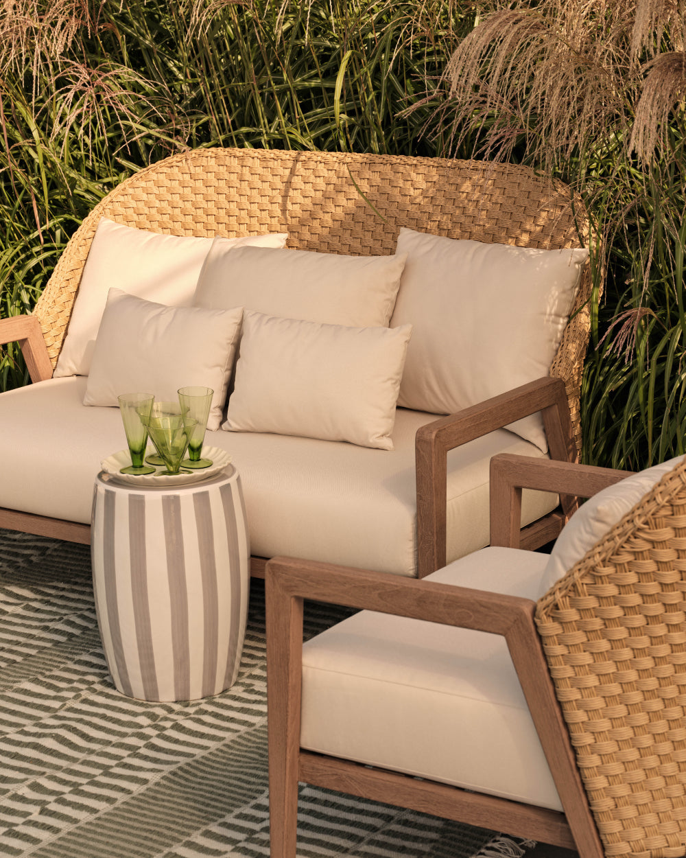 A considered set-up will also encourage socialising, so ensure you arrange your outdoor furniture in an intuitive way that invites people to sit and relax. We’d recommend avoiding one large group of chairs and opt instead for smaller clusters that guests can easily flow between – and don’t forget about creature comforts. “I see my outdoor space as an extension of my home, so when creating a spot in which to enjoy the good weather with friends and family, I like to take inspiration from my sitting room,” says Sue. “This means including plenty of outdoor sofas and armchairs, a table or two for trays of drinks and nibbles, and lots of cushions to add colour, interest and comfort.”