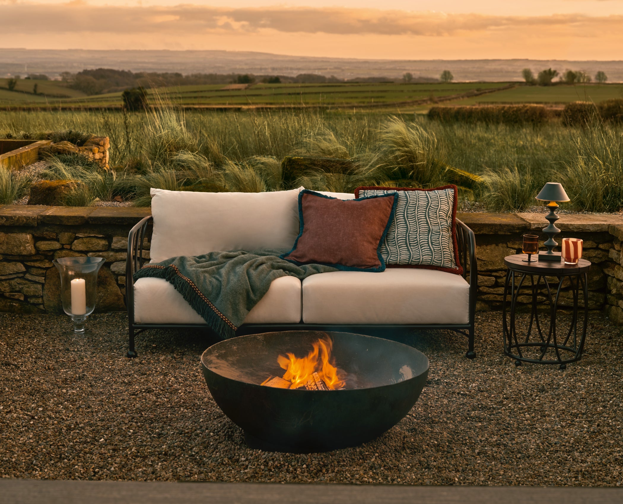 How do you make a small patio look good? One of the best ways is to simply embrace its size – using plants, accessories and lighting, you can make compact spaces feel cosy and inviting, the perfect enclave in which to curl up on a summer’s evening. Start with potted plants and trees and line them along the wall or fence to provide a pop of greenery (and additional privacy) to your terrace or patio, and then place a comfortable garden sofa or a pair of armchairs in the centre. Add plenty of showerproof cushions and a throw (or two) for those chillier nights, and finish the look with a few candles, LED lamps or fairy lights strung along your fence. This will make a cosy patio area that feels like your own private oasis away from the rest of the world. Just add sunshine.