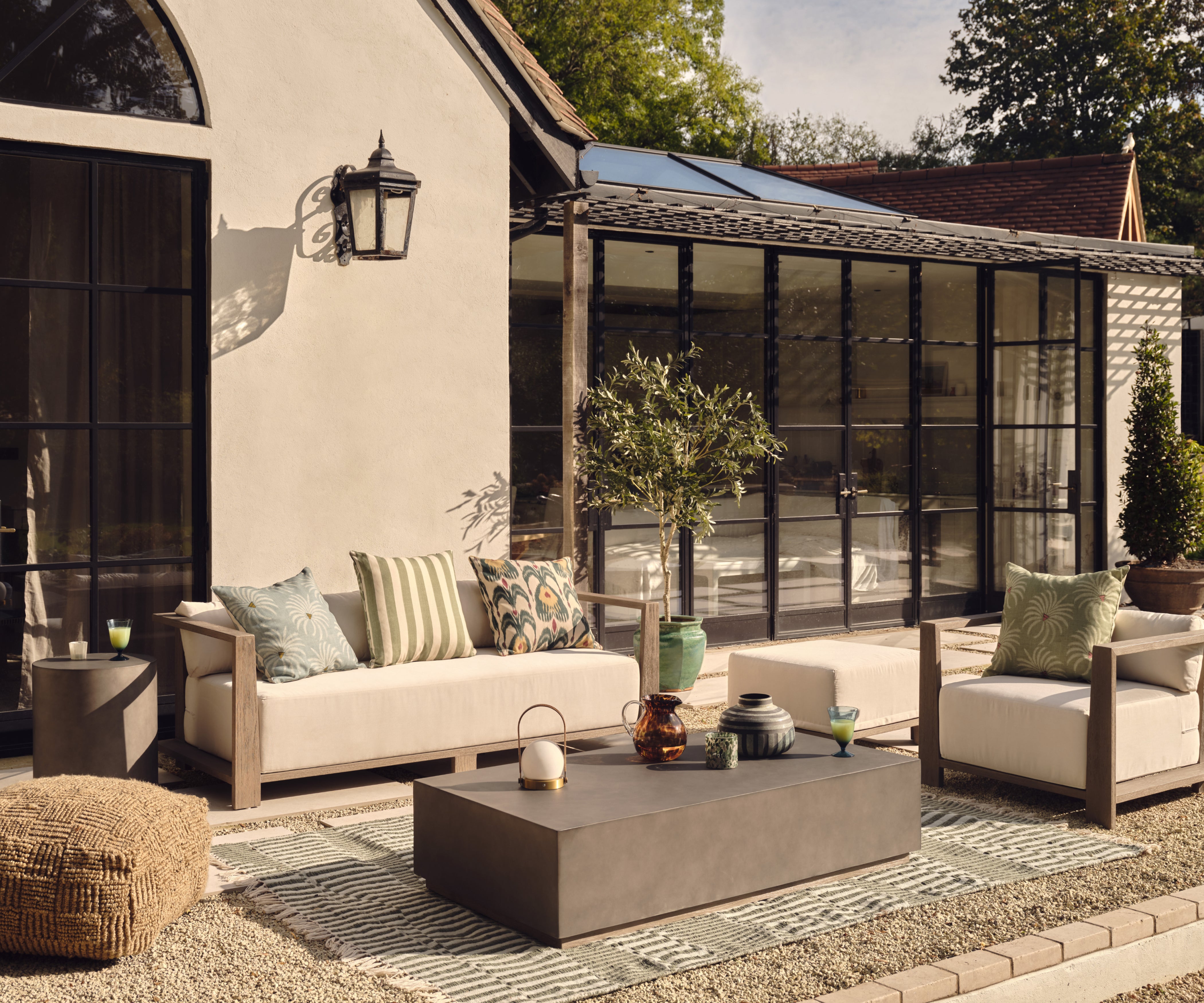If you have a little more room to play with, zoning your patio or terrace can really help to maximise on space. For example, designating one area of the patio to dining and another to lounging will give the impression of multiple ‘rooms’, which you can move between depending on the time of day or activity. Indoor/outdoor rugs can again help in this instance, creating a central point for each area. Alternatively, grouping your lounge furniture in a circle, with the largest piece turned away from your dining table, will make the spaces feel separate. You could also place decorative pots, planters or hurricane lamps between the two, to produce a physical line that separates them from one another.