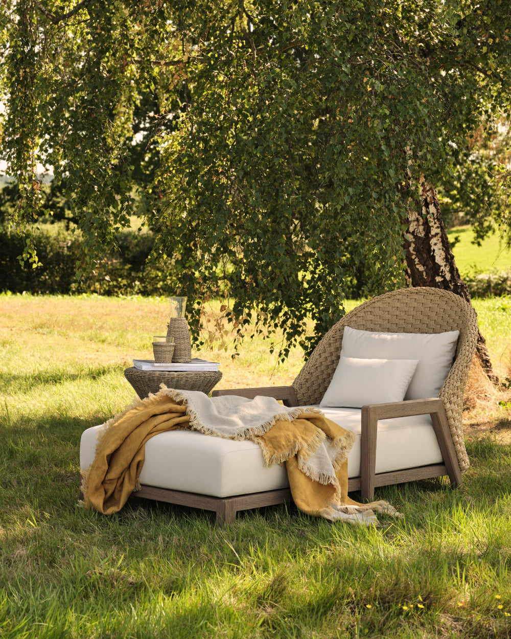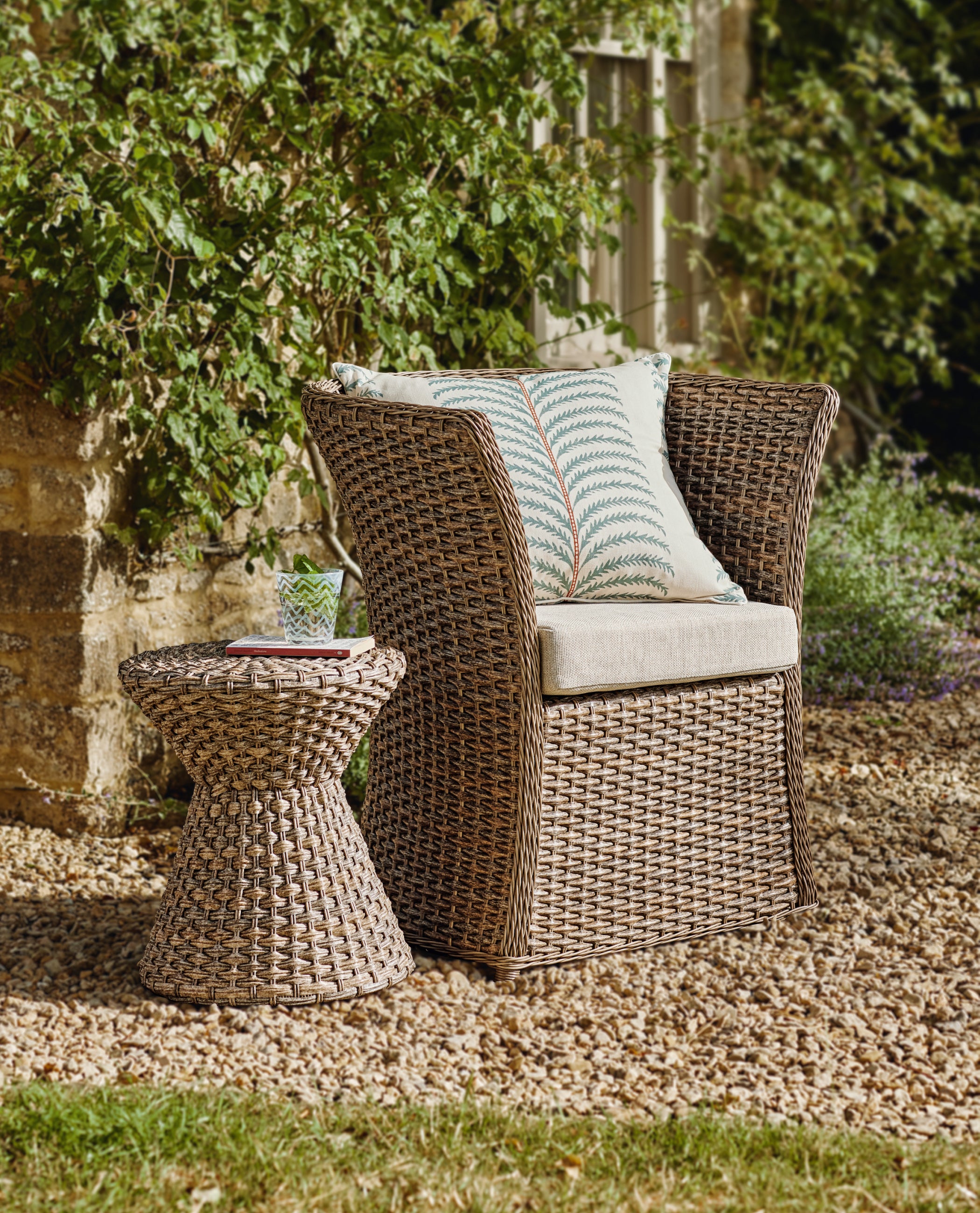 When it comes to small garden patio ideas, seeking furniture pieces that can provide more than one function will save you valuable patio room when your square footage is minimal. An upholstered ottoman, for example, can provide a space on which to sit, rest your feet or place a tray of drinks, while a ceramic stool can be both a side table and a seat. If you only have room for a dining table, why not opt for dining chairs that you can also lounge in? A design with arms and upholstered seats, for example, will be suitable for both sunbathing and al fresco feasting. You could even look to inside spaces for inspiration; our range of indoor/outdoor dining tables bridges the gap between the interior and the exterior, allowing you to move your dinners outdoors on warmer days, and back inside when the weather cools down.