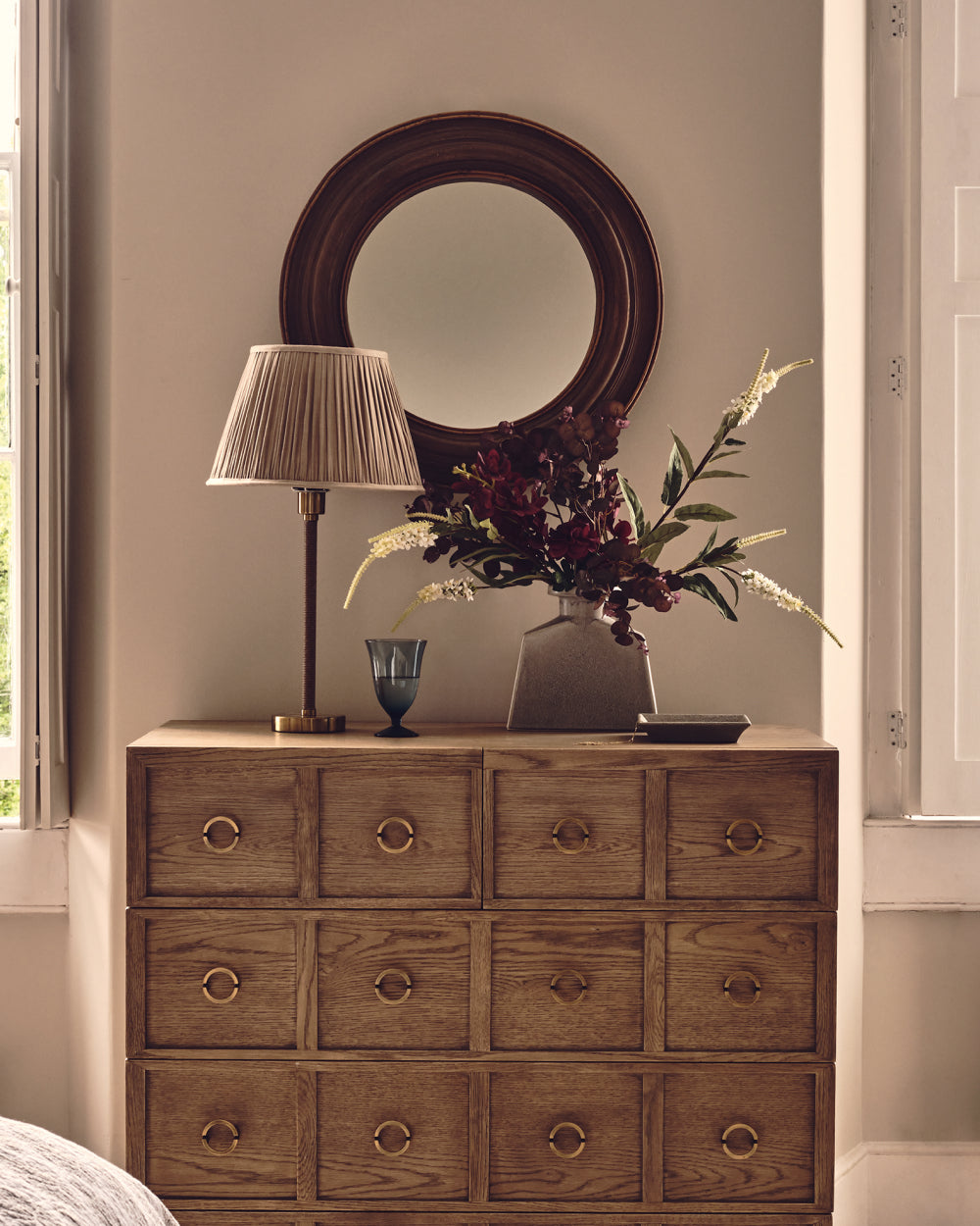 Bare walls can make a space feel empty and unloved, so we recommend using them as a canvas. For a clean look, rather than creating a gallery wall of lots of artwork, we advise choosing one or two large pieces wisely that will be the main focus. These should be authentic to you and your home, and sometimes that takes time to find. Building a look over time is part of the pleasure of curating your home. Mirrors can also be used in place of artwork to create a light flow throughout your room, making it feel bigger and airier. An ornate frame will make your mirror just as eye-catching as a piece of wall art.