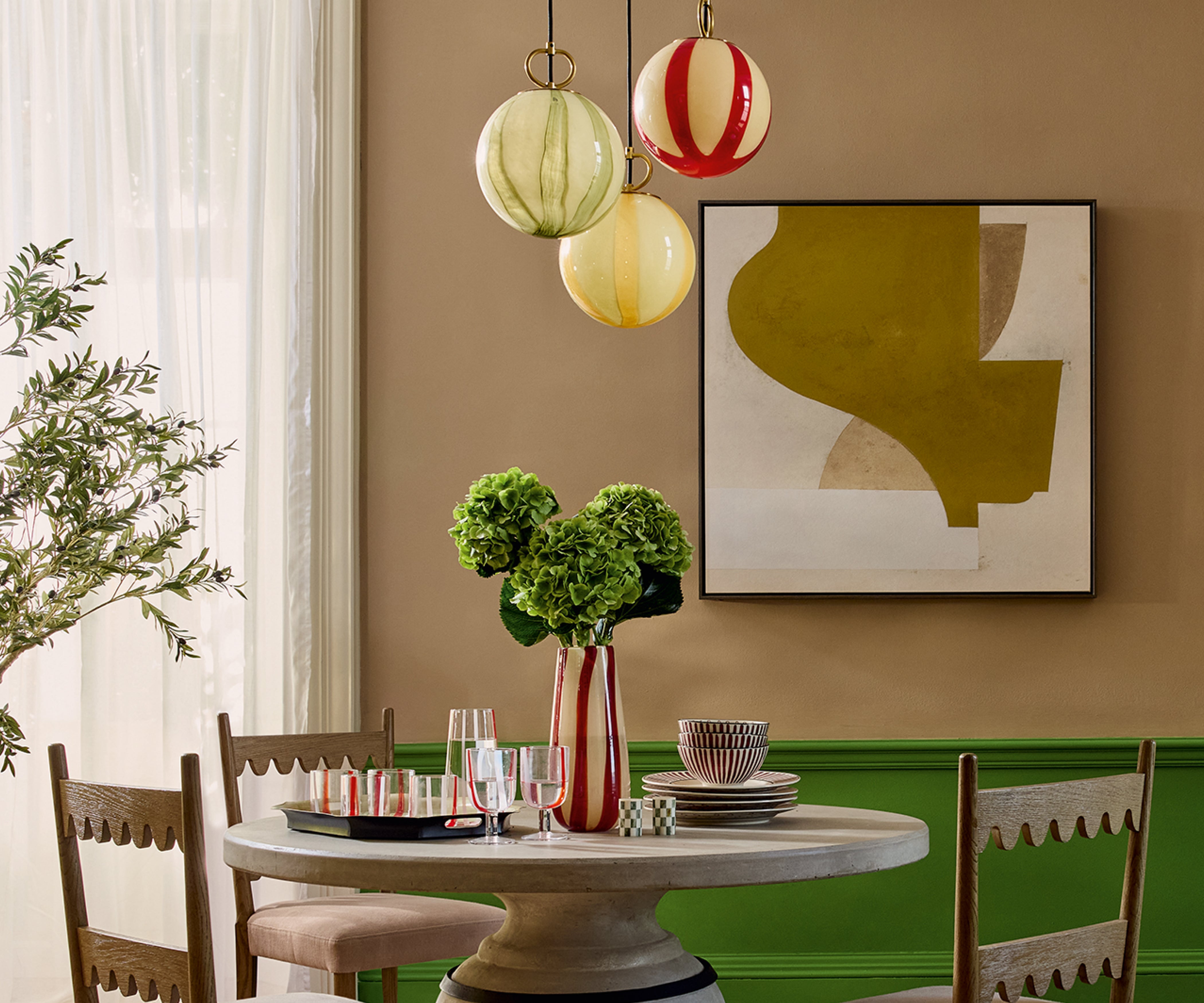 Monochrome accents add a punchy full stop to the medley of primary hues and neutral tones. Think thick black lines, present on the legs of armchairs, on the frames of artworks or in the shape of side tables. Graphic patterns in black and white give another nod to this trend; look to grid prints on soft furnishings and stripes on accessories – just make sure the lines are sharp and straight.