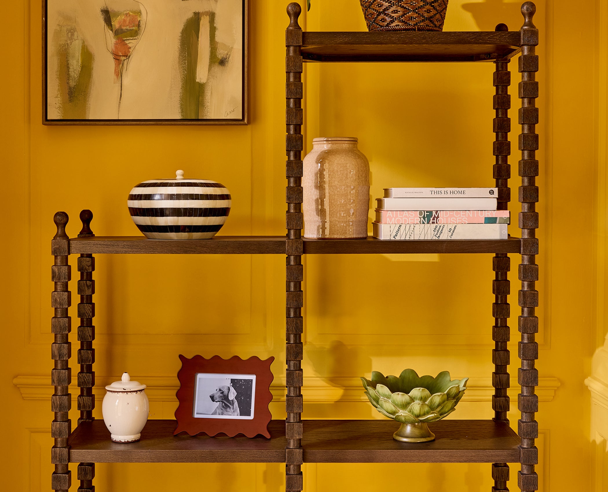Though clean lines are this style’s defining characteristic, there’s no reason those linear pieces can’t be eclectic in their own right. Take cues from your graphic prints and seek designs in unusual and unexpected forms – think the hexagonal shape of our Shida Side Table, the curved silhouette of our Beta Table Lamp or the Wikkel Mirror with its wiggling golden frame. Though simple in colour, their sculptural forms draw the eye and add instant interest to a space. Paired with a vibrant palette, contrasting prints and monochrome accents, they’ll give this bold design style a final – and daring – flourish.
