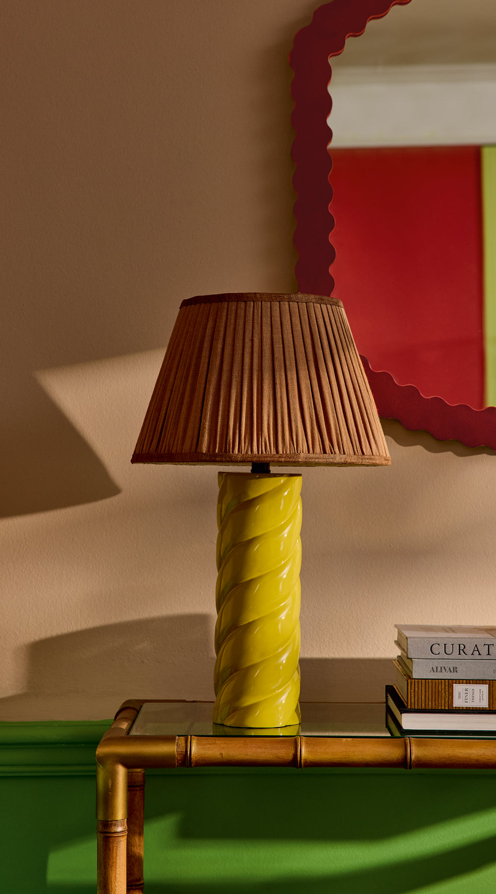 The soft romanticism of pink or the endearing freshness of sage are best reserved for looks of a gentler nature. This style is bold and its palette follows suit. Bright, crayon box colours are the shades du jour, with primary hues leading the charge. Fire engine red (already a trending colour in 2024), cobalt blue and sunshine yellow are your first port of call when it comes to this aesthetic, with peppy jungle green and high-vis orange making for equally vivid accent colours. To temper the vibrancy, pair these statement hues with neutrals and naturals – stone tables, rattan lampshades and linen soft furnishings will balance out the bolder shades.