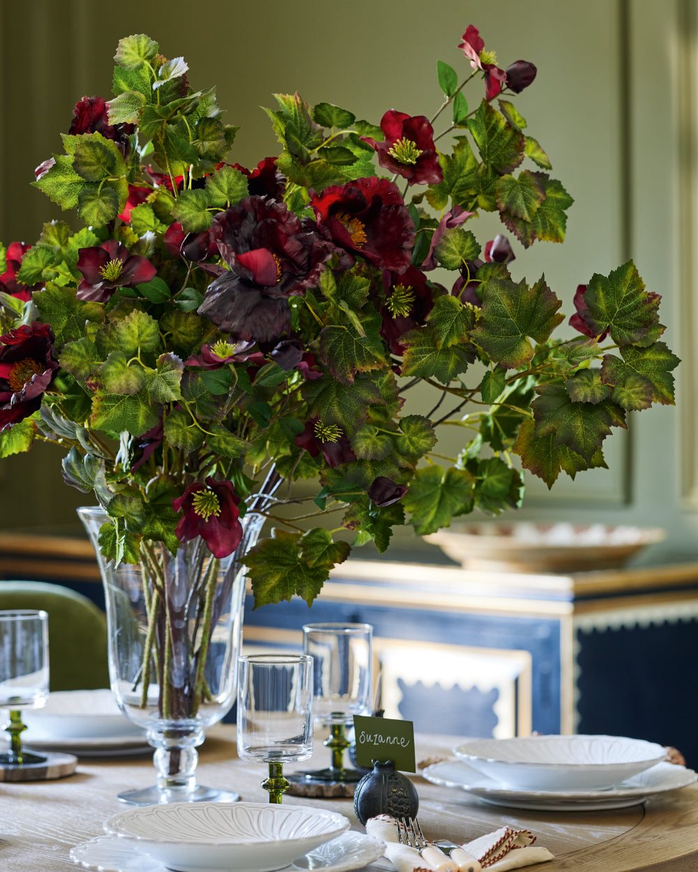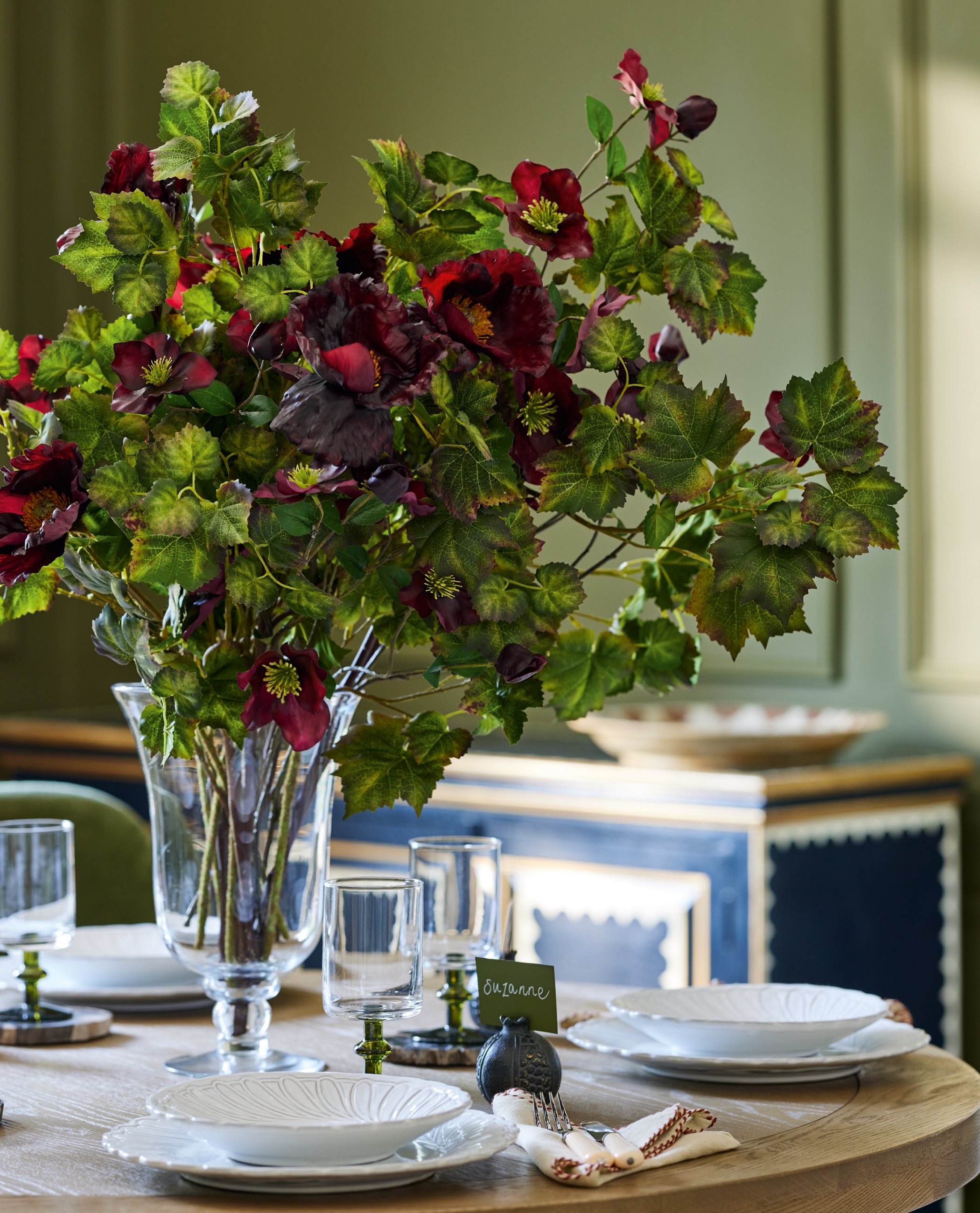 It sounds obvious, but incorporating flowers and foliage into your interiors this winter is a simple way to get closer to nature. But who wants to traipse out into a soggy garden to forage for stems that might lack the colour, vibrancy or abundance of summer? Instead, curate a bunch of faux blooms to create a seasonal display that nobody will ever guess isn’t real, while showcasing them in a decorative vase on tabletops and surfaces in need of a lift. Elsewhere, why not brighten up dark corners and add colour to spaces with faux plants and trees in statement pots? This Faux Potted Olive Tree in our Fenghuang Planter – depicting typical Chinese scenes in a jade colourway – certainly brings the outdoors in and taps into the trend for making a feature of indoor trees. A real conversation-starter around the table.
