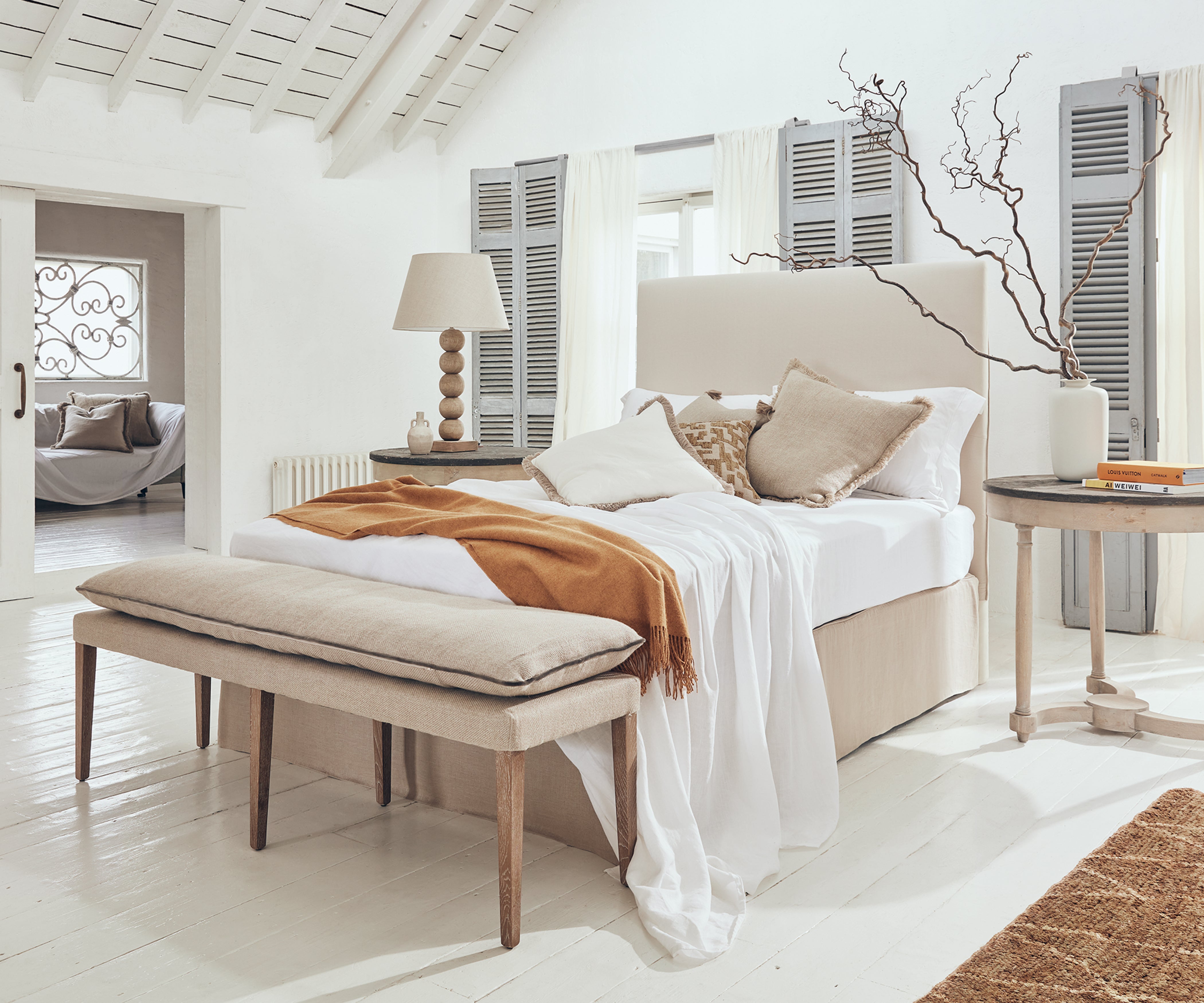 Research proves that waking up to natural light can do wonders for your mood. This room certainly allows you to begin the day on a positive note, with its generous windows and air of tranquillity. It has everything you could want from a bedroom, yet the space doesn't feel overcrowded. It's where you'd want to take a quiet moment of reflection. Bare branches, olive trees and linen textiles play to the scheme’s Cycladic roots.