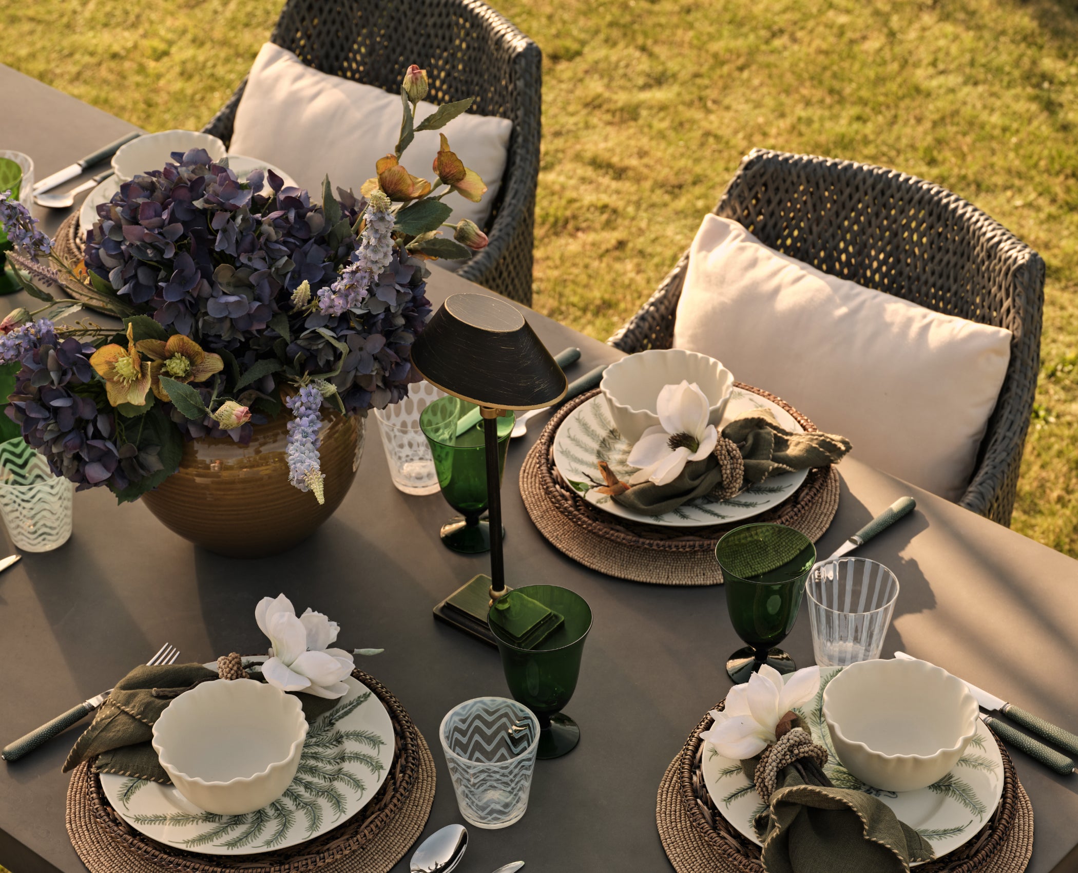 Rattan was how OKA began ­– when our Co-Founders created our very first catalogue more than 20 years ago, rattan was a key component of the collection and has remained so ever since. It was only natural, then, that it would play a starring role in our Garden Collection, too. We worked with the best makers to ensure our synthetic version looked as attractive as the real deal, creating all-weather patio furniture and garden sets that could withstand the elements, while maintaining the rustic appeal of original rattan.