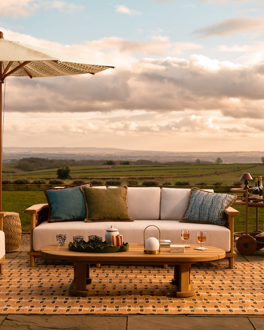 Almost all of our garden seating designs come complete with polyester seat cushions, which are water-resistant and easy to care for. We’ve also introduced a range of outdoor cushions to our garden accessories collection; inspired by our core cushion range, they bring some of our most-loved prints outdoors, made using shower-resistant and anti-mildew polyester that can be machine washed.