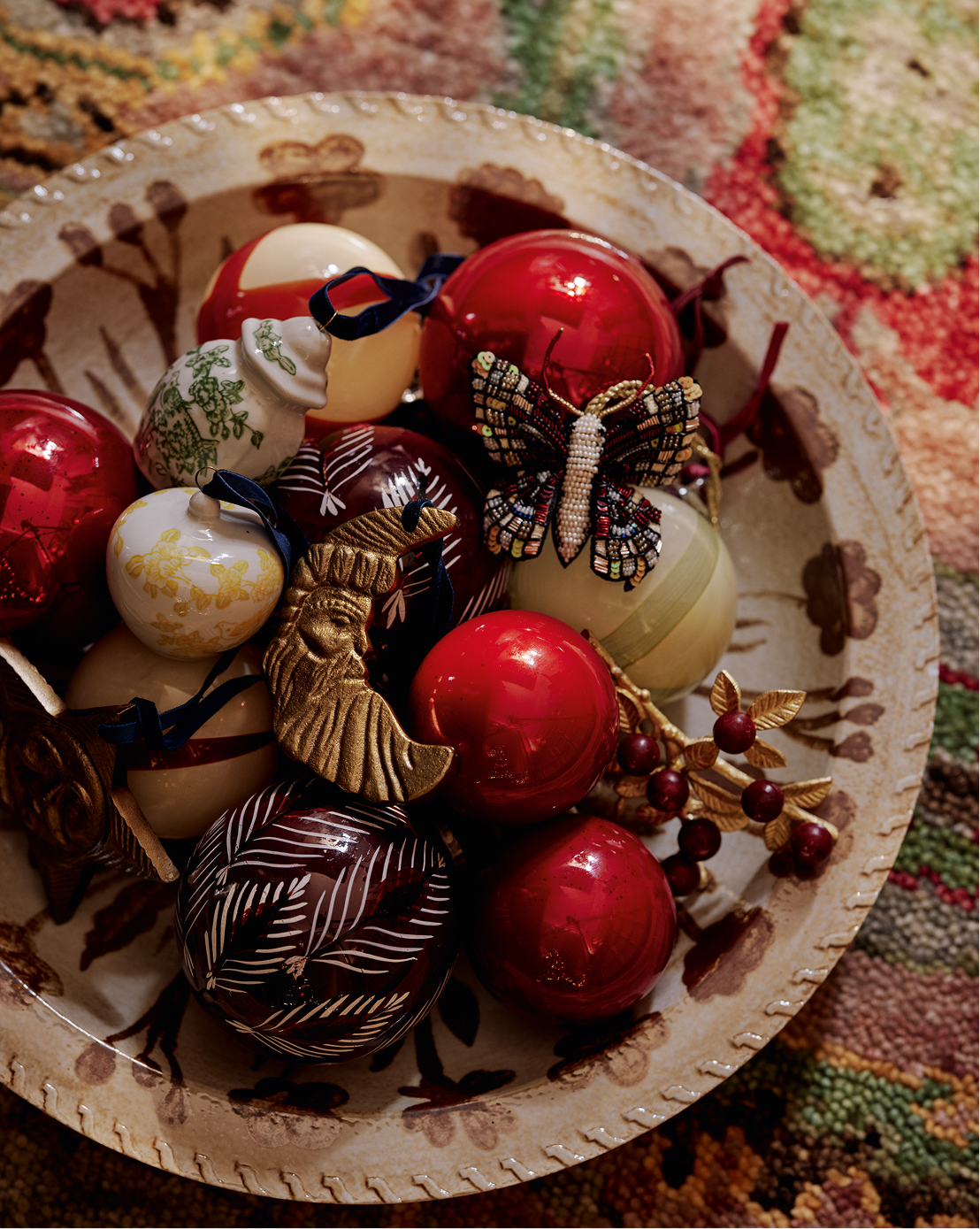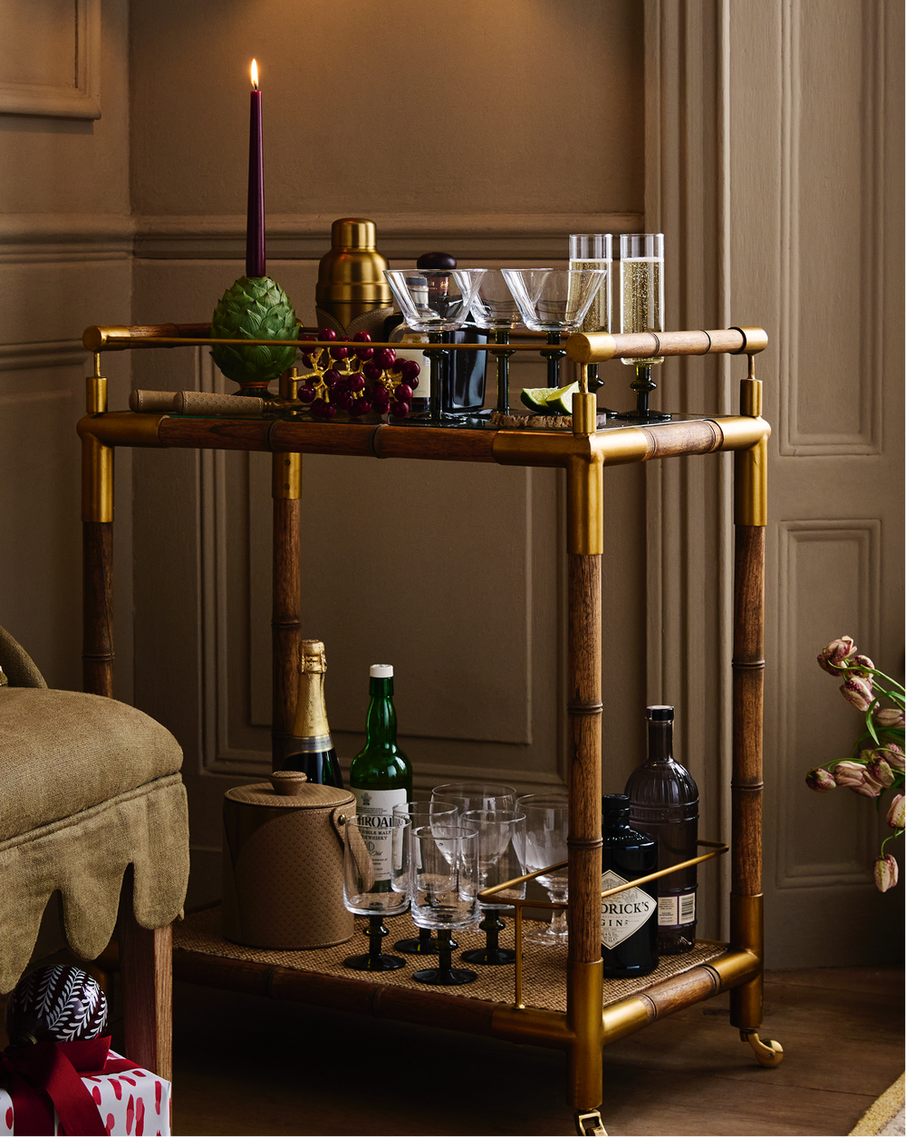 Here, we share a few ideas for creating your own pockets of Christmas, from a styled bar cart to a bowl filled with glimmering ornaments. Whether you’re curating a traditional country Christmas look or simplistic elegance, bring warmth and glints of sparkle to every corner of your home.