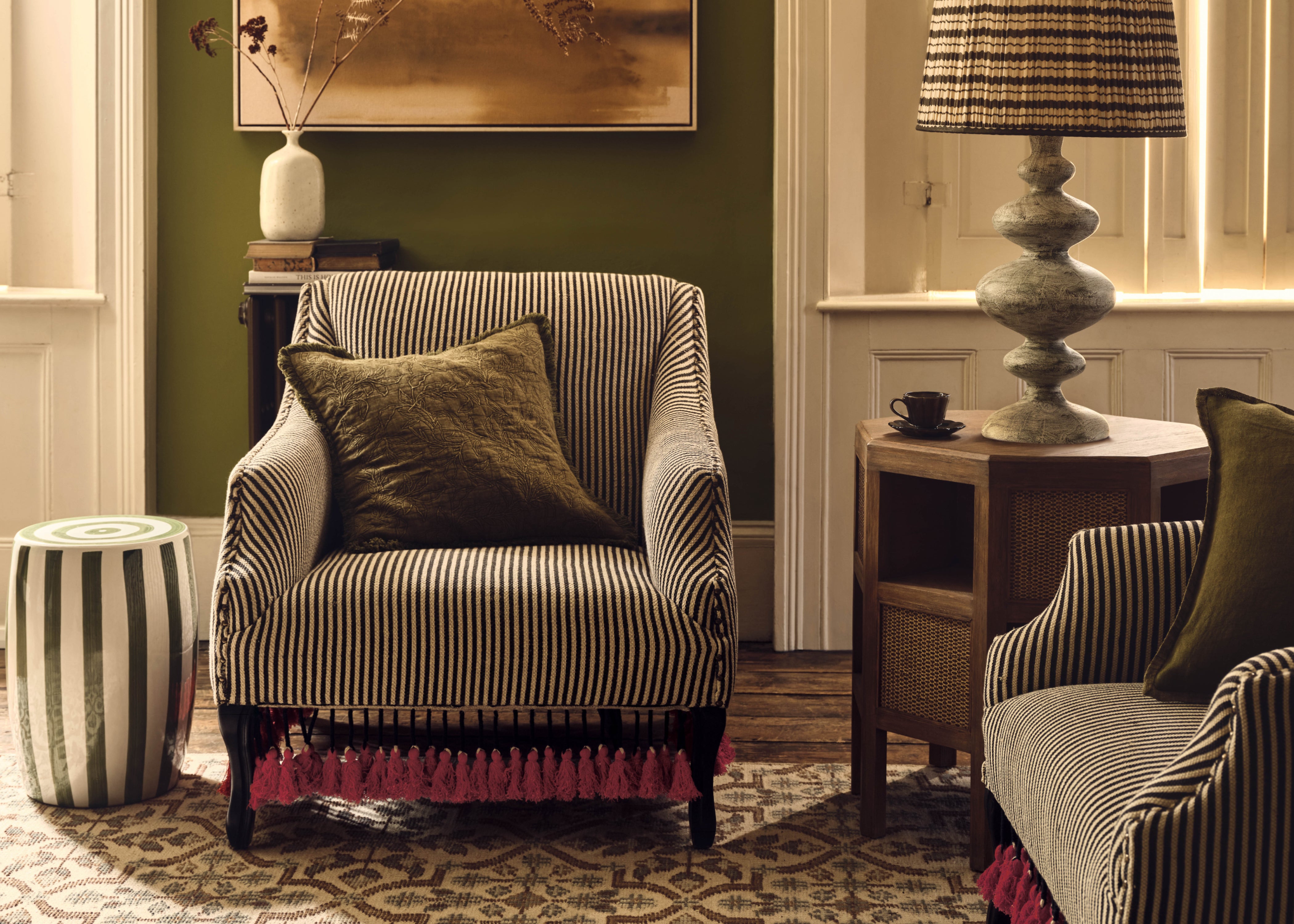 Trims and tassels are having a moment in the world of interiors and in our latest collection of Furniture and Accessories. What is the joy of design if we don’t pay attention to the details? In designer jargon, these trimmings are known as passementerie, and they can add so much interest and style to your home. As Henriette von Stockhausen, the creative director of design studio VSP Interiors, once told us, they make a room feel “that much more considered […] the more layers you have the cosier an interior gets really.” Imagine having a nondescript beige armchair in the corner when you could add an eye-catching trim around its edge so that it suddenly has a personality of its own that cannot be ignored. What would you prefer?