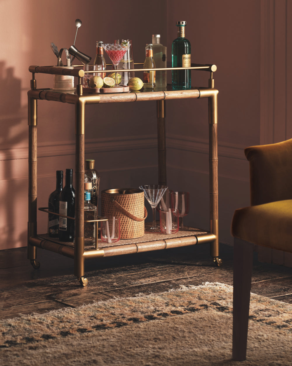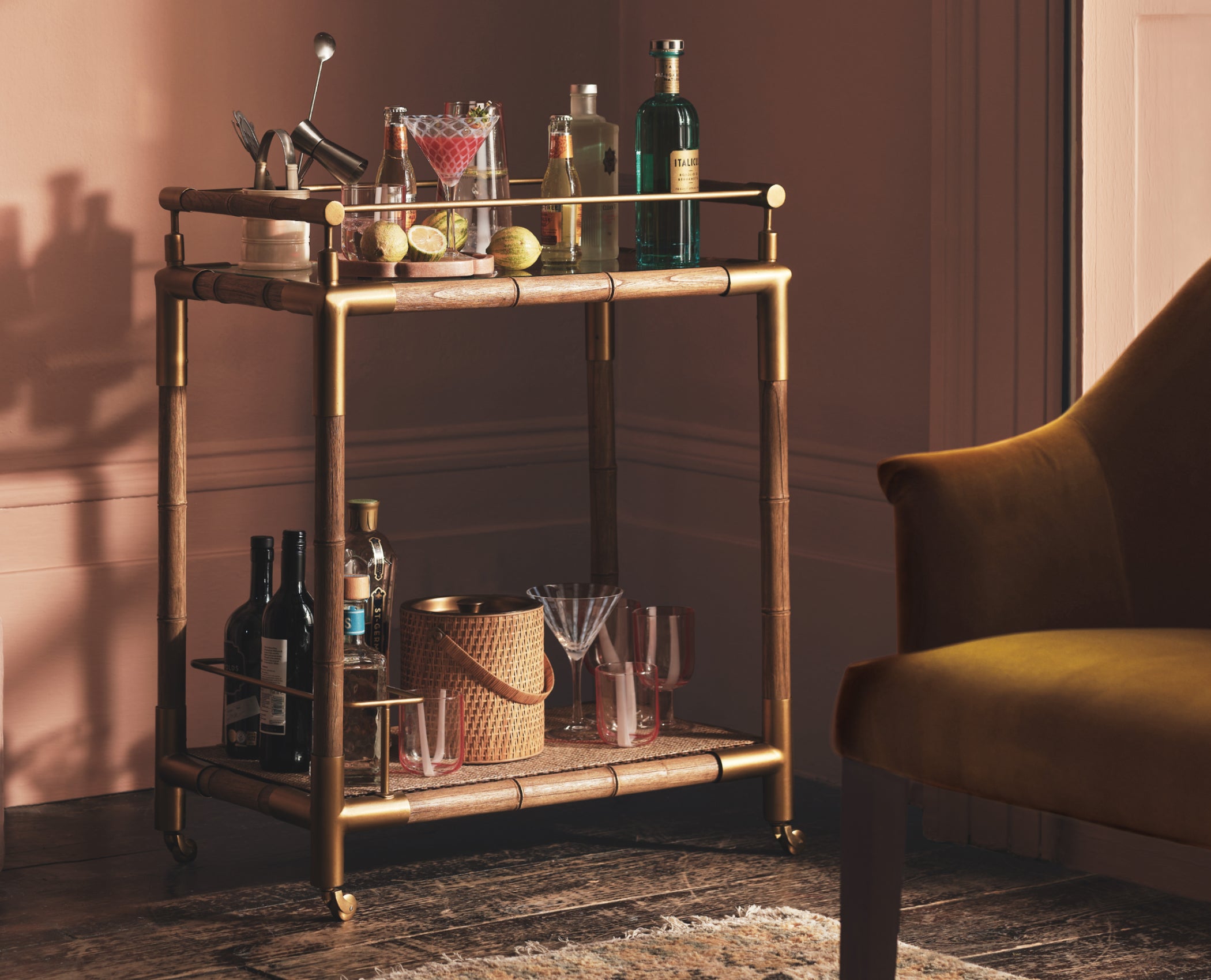 For those seeking a truly impressive set-up, we’d recommend a specialist drinks or wine cabinet. This is a stylish piece of furniture which can house all of your bar accessories, glassware and drinks. A drinks trolley is a fun addition to cocktail parties. Load it up with your best barware and wheel it out when happy hour begins.