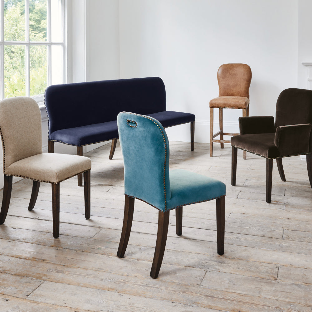 Created by Co-Founder Lady Annabel Astor, Stafford seating is a stalwart of OKA design. The future heirloom is characterised by an elegant silhouette that tucks seamlessly beneath a table together with signature brass studs and a stylish back-pull.