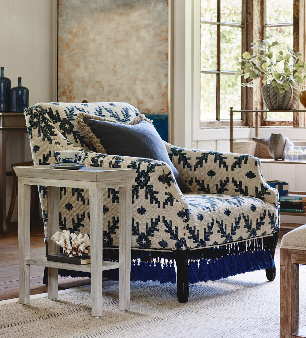 Whether a sofa or an armchair, nothing says 'OKA' quite like Tarma. Inspired by a rug discovered in an antiques market, the seating features handwoven and handprinted upholstery with signature removable fringing, meaning it couldn't be simpler to refresh the look of your seating.