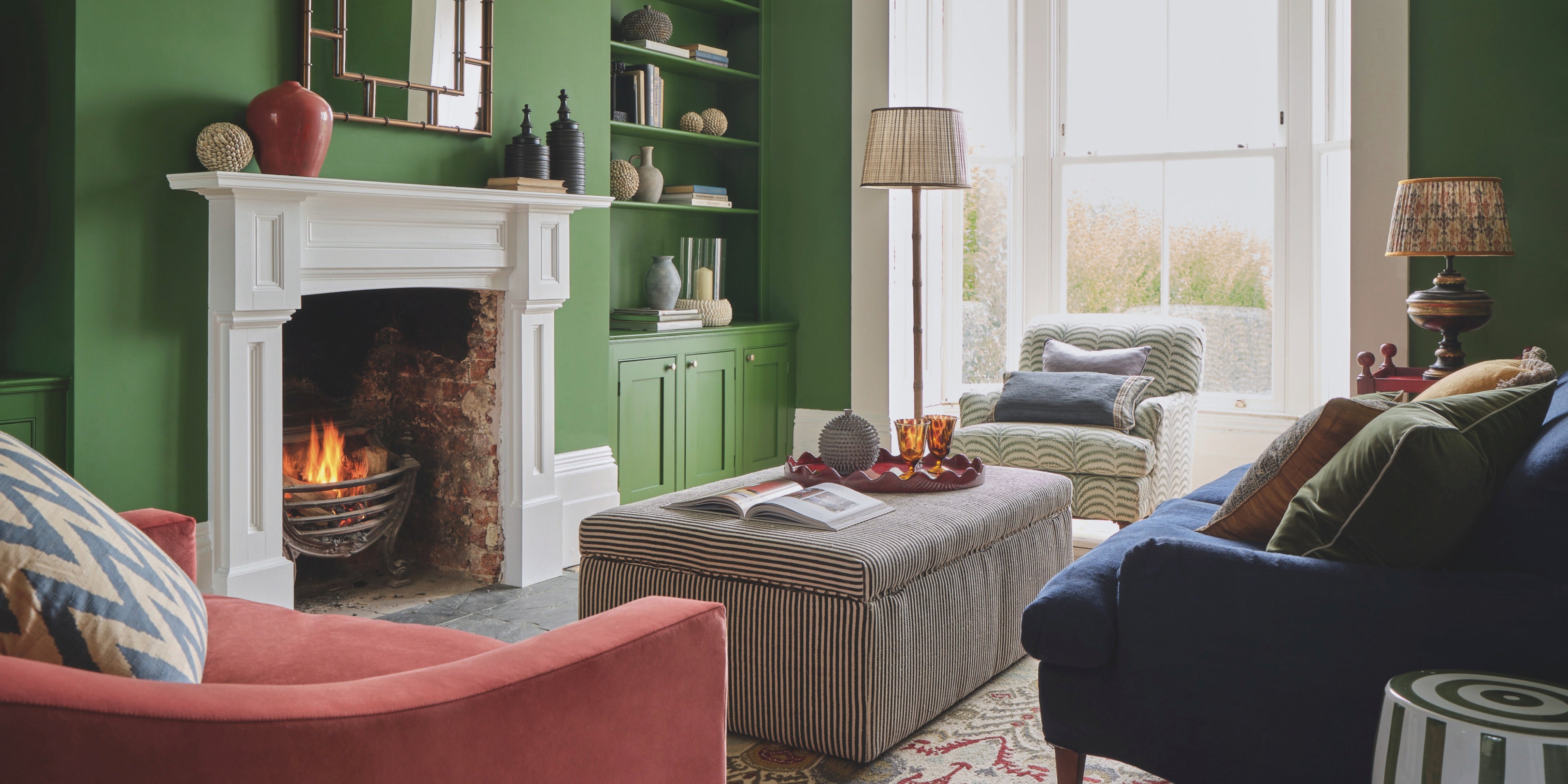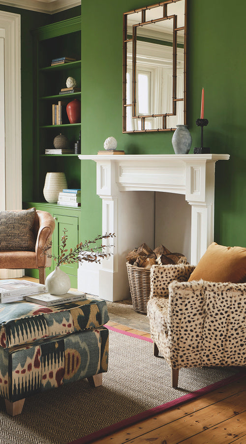 Homeowners Georgie and Alex happily refurbished their dream home in Surrey but admittedly ran out of steam when it came to the drawing room. That's where one of our interior designers came in to help the couple embrace their playful style with colour, fabric and pattern. A space for milestone family celebrations and movie-nights with friends.