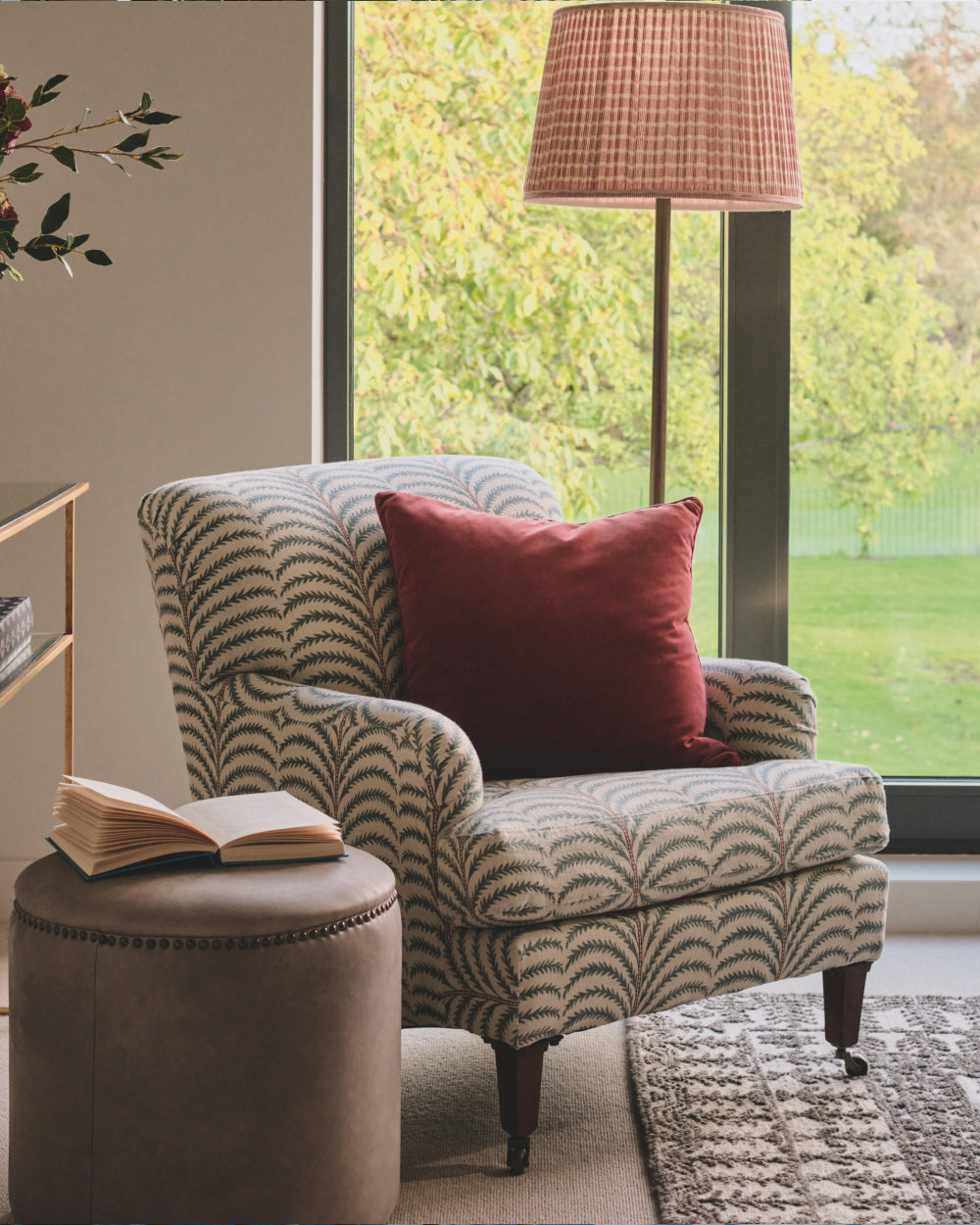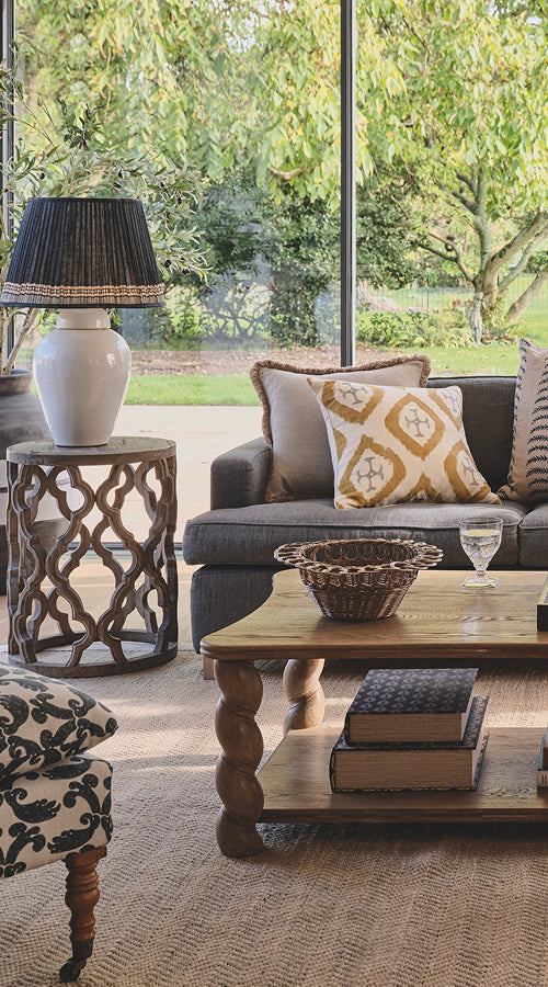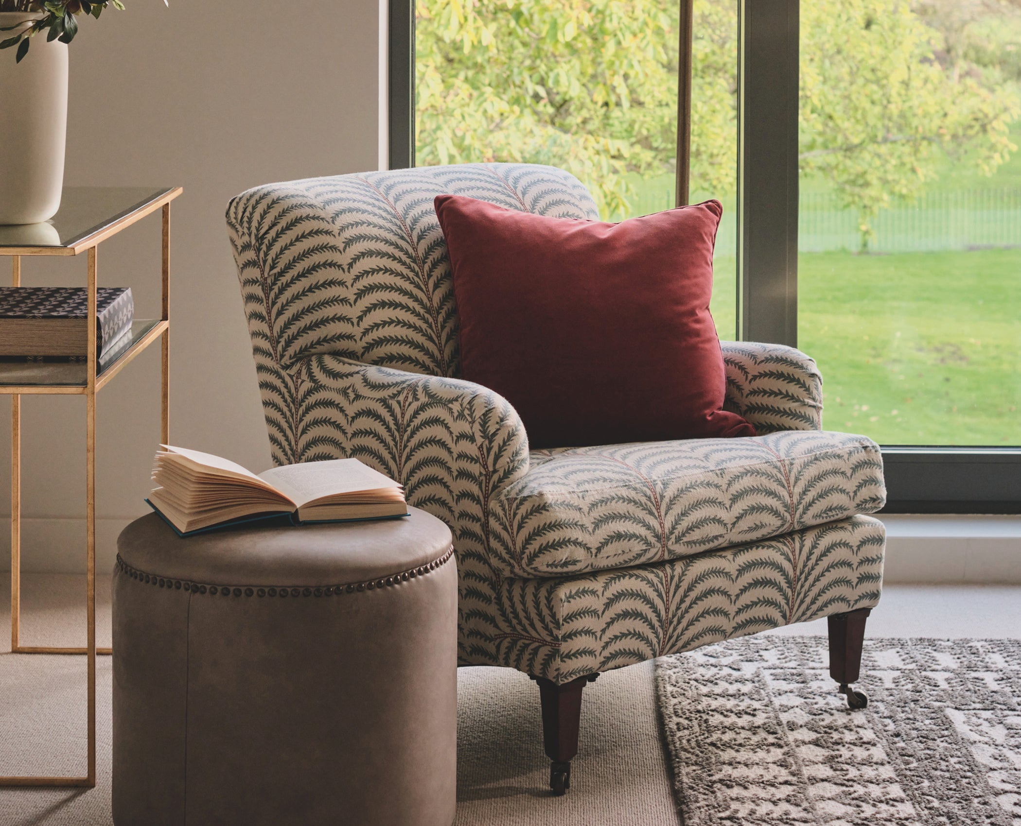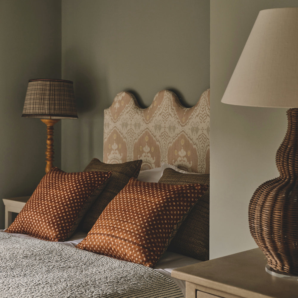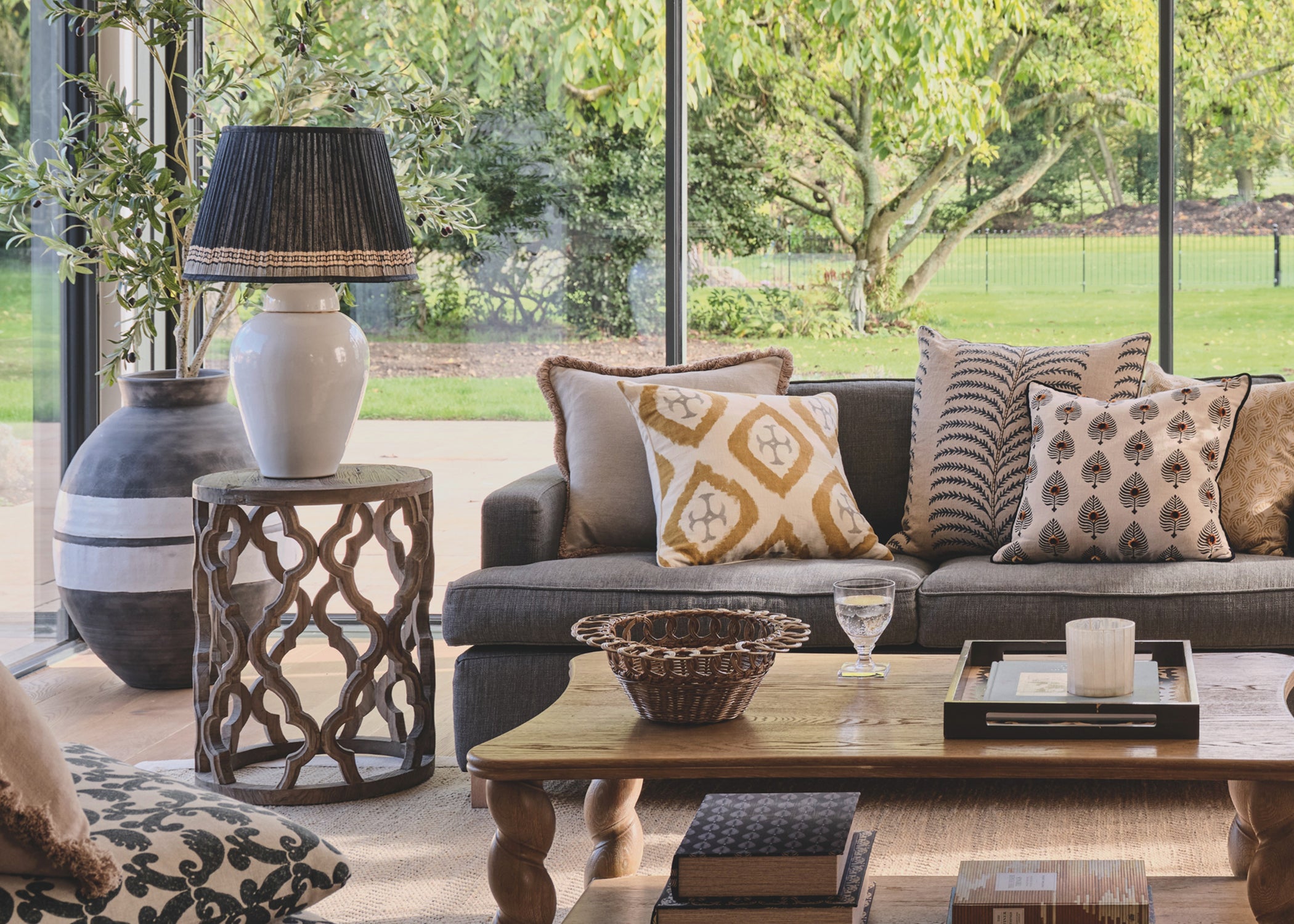 From colours to pattern and finishes, homeowners Kate and David collaborated with one of our interior designers on bespoke furniture upholstery to strike a harmonious balance between old and new in their historic cottage in Surrey. The result is a warm and welcoming space for friends and family.