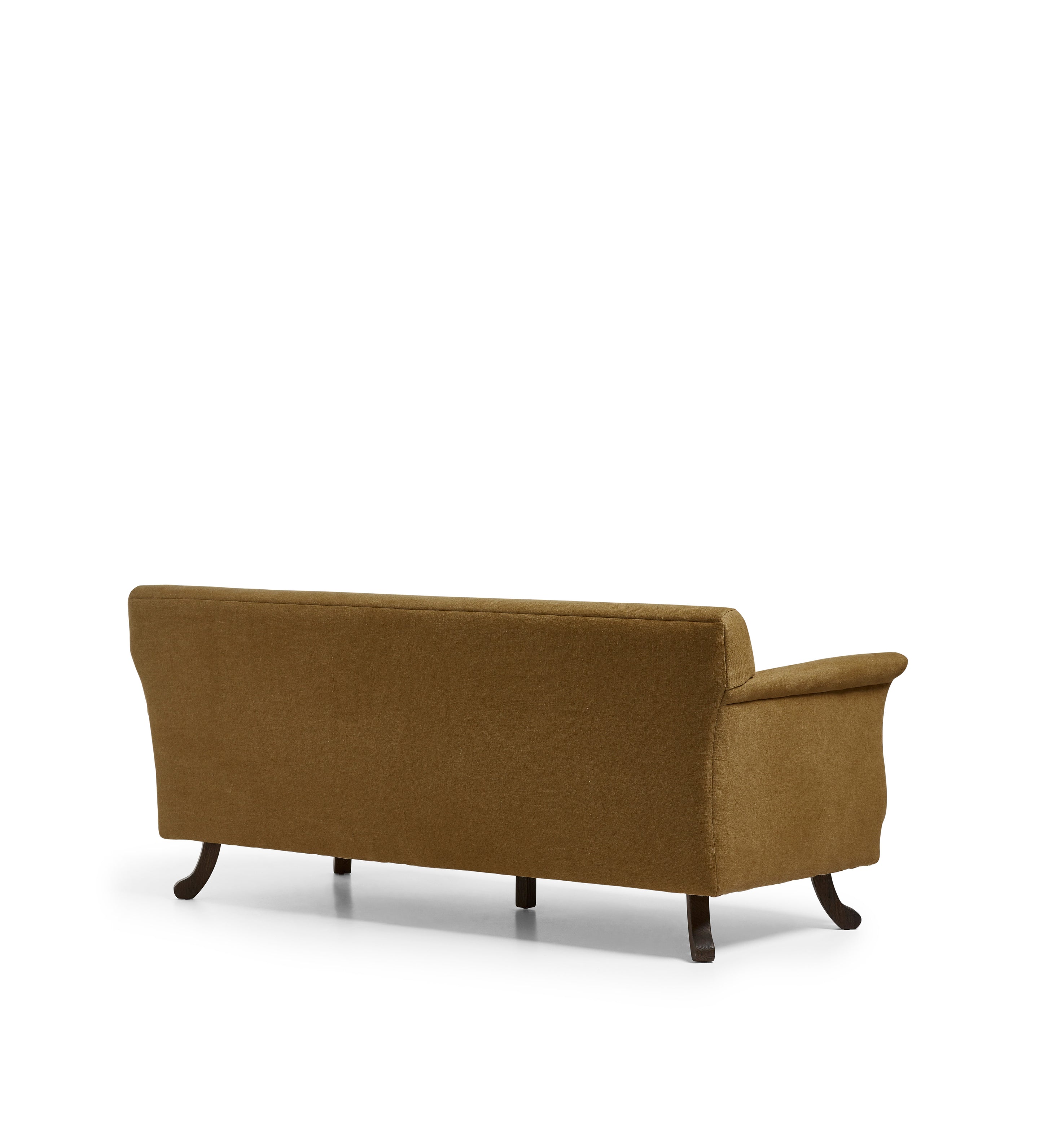 Encapsulating classic British design is our Alexandrina 3-Seater Sofa with a refined silhouette, gently-curved arms and a deep, inviting seat. There are twists and turns along the way, of course, such as the sumptuous linen upholstery in dark caramel that adds warmth and drama to any space. The velvet piping, espresso legs and adjustable feet complete the look.