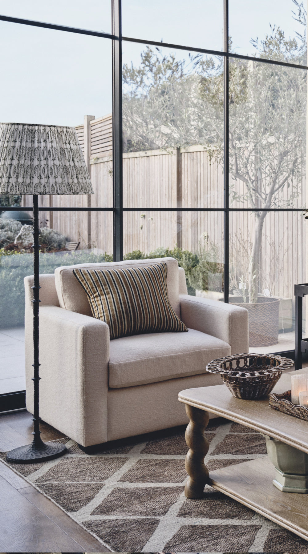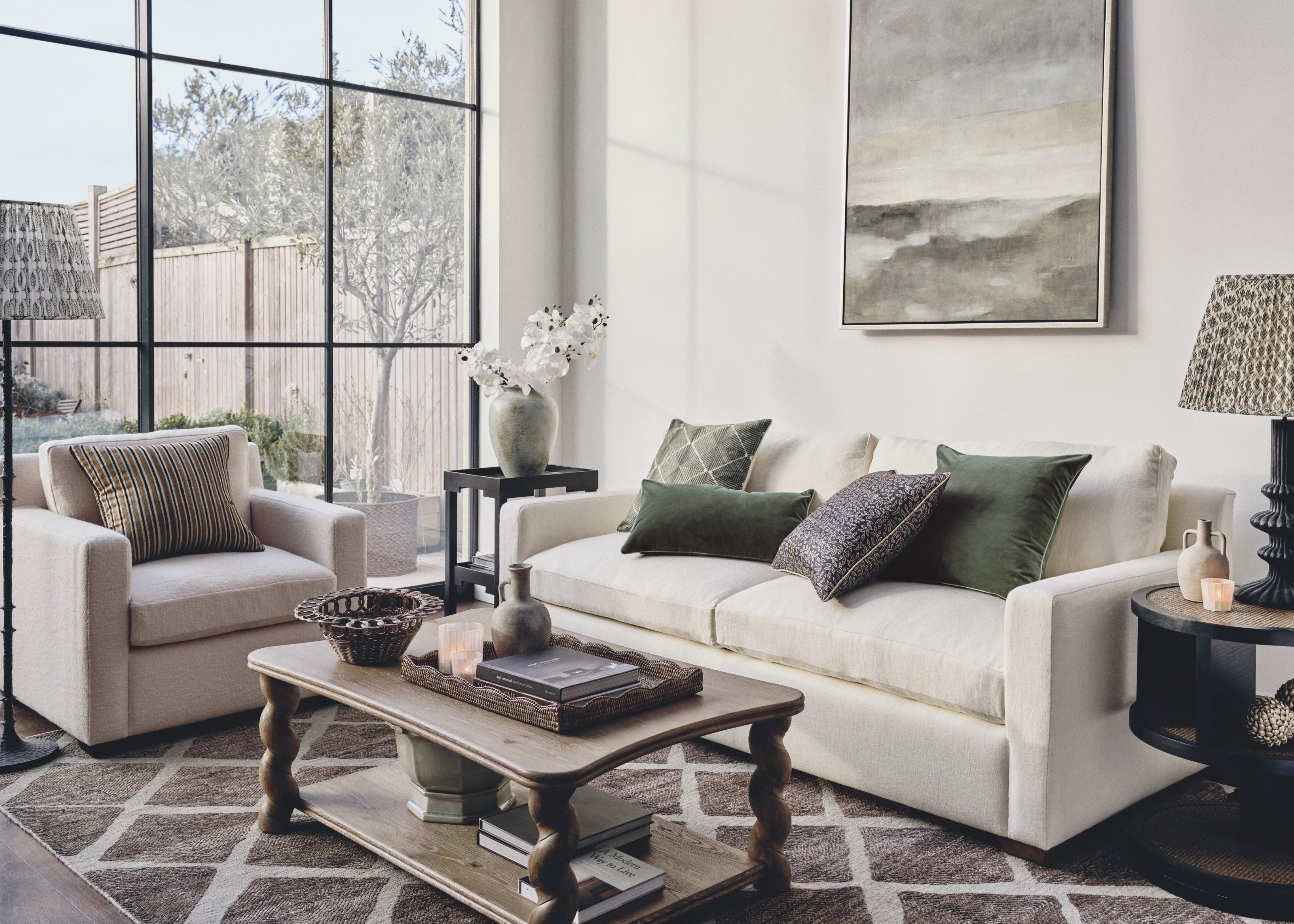 One of our most contemporary seating designs, the Barrett Sofa range celebrates clean lines and structured style. The square silhouette, with our take on traditional track arms, is neat and crisp but remains comfortable thanks to its generous proportions. The sprung seat has a foam core and feather surround and appears to hover above the floor with its almost invisible block feet. The Barrett can be customised to fit all kinds of spaces, whether you want an armchair or a sofa. Choose from a wide range of fabric, colour and leg options.