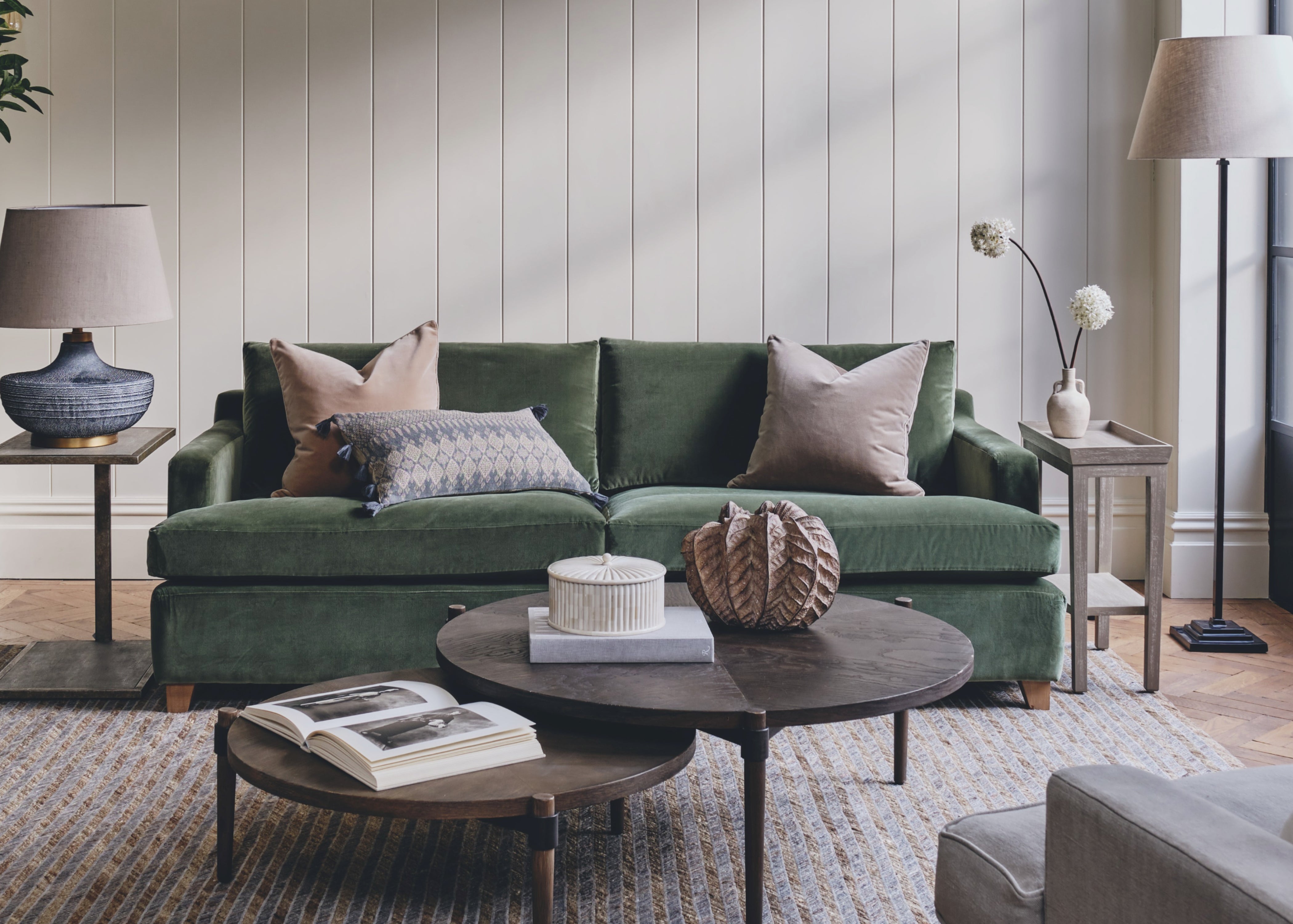 The elegant Beale seating range is quite the chameleon owing to its intrinsic ability to pull off every cut, shade and fabric imaginable. Part of its charm is that it looks just as graceful covered with dark red linen as it does upholstered in sumptuous charcoal velvet. Its short, tapered, oak legs, square arms and low-sitting frame give it a modern, clean-cut aesthetic. To ensure maximum comfort, the seat cushion's foam core is crowned with a feather topper. The Beale can be tailored to fit all kinds of spaces, as it is also available as an armchair, loveseat and various sizes of sofa. Choose from a wide range of fabric, colour and leg options.
