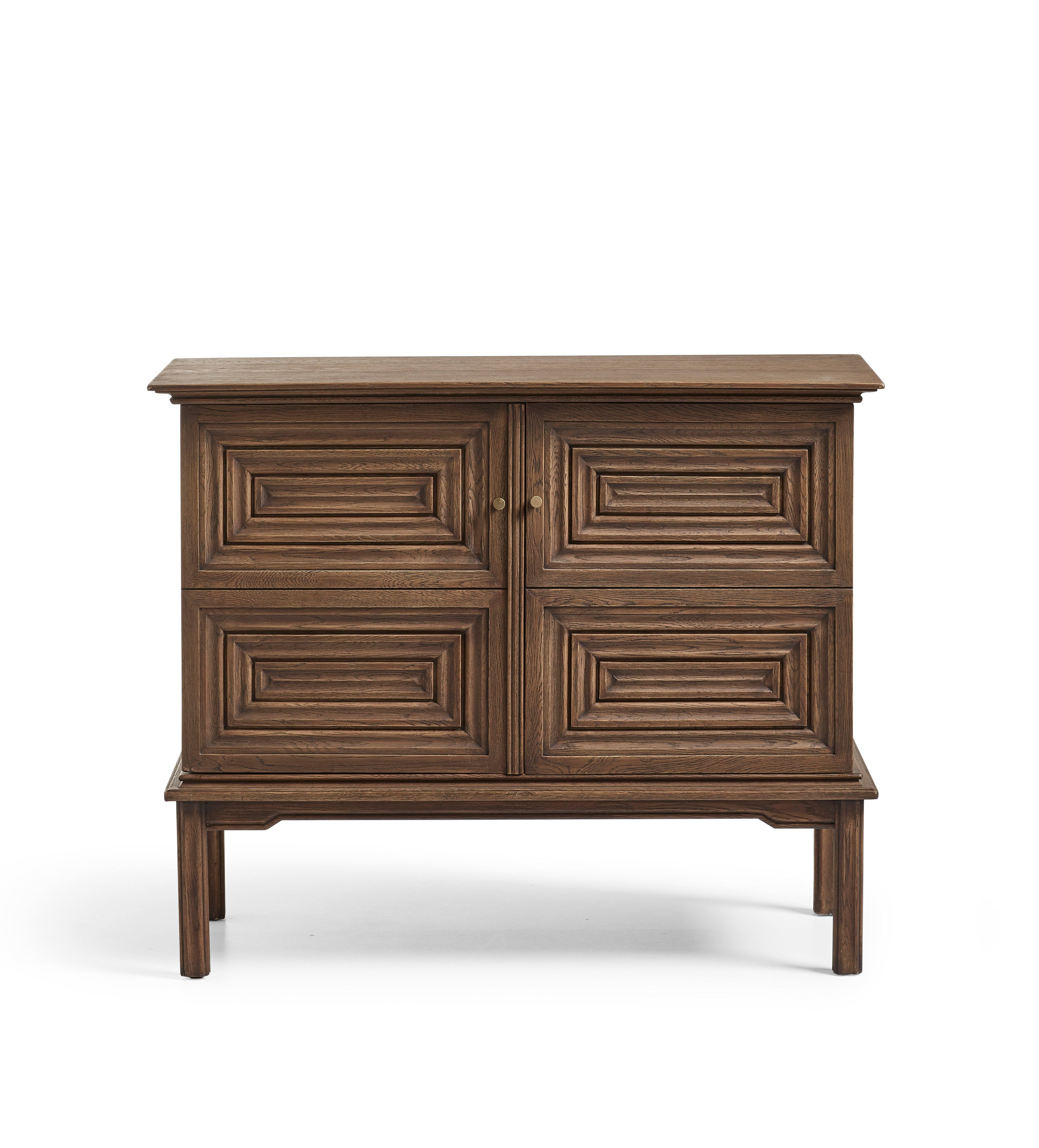 With a name inspired by the art of engraving, the Caelatura Cabinet is a study in quiet craftsmanship. Its gridded door fronts, finished in a rich espresso tone, create a striking visual focal point. Balancing elegance and practicality, this two-door cabinet brings warmth and character to any setting.