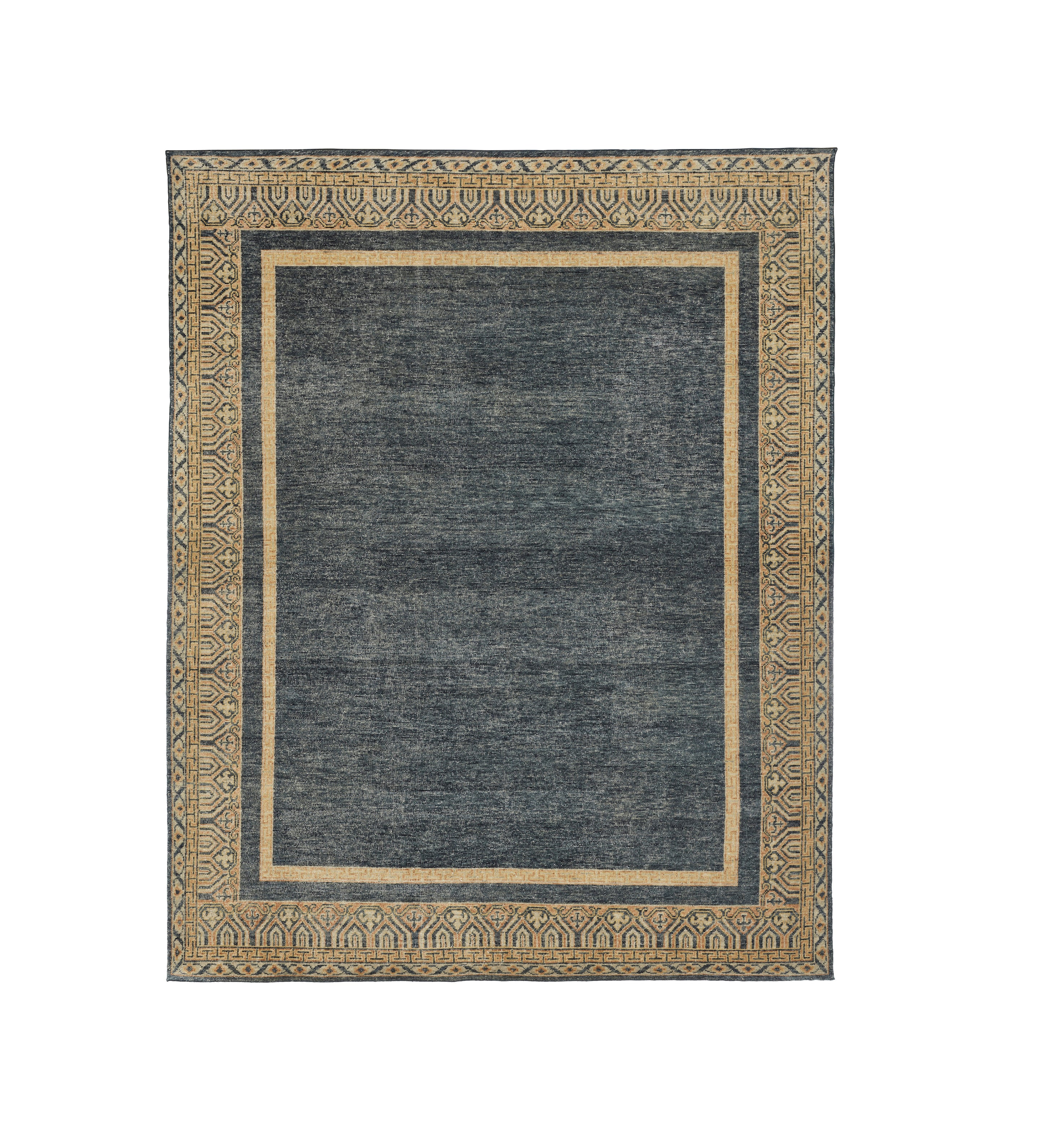 Hand-knotted, the Chastleton Rug features an antique air force blue hue, bringing a rich, Jacobean manor feel to any room. Its patterned border introduces a contrasting element, making this 100% wool piece a striking and impactful addition to your interior.