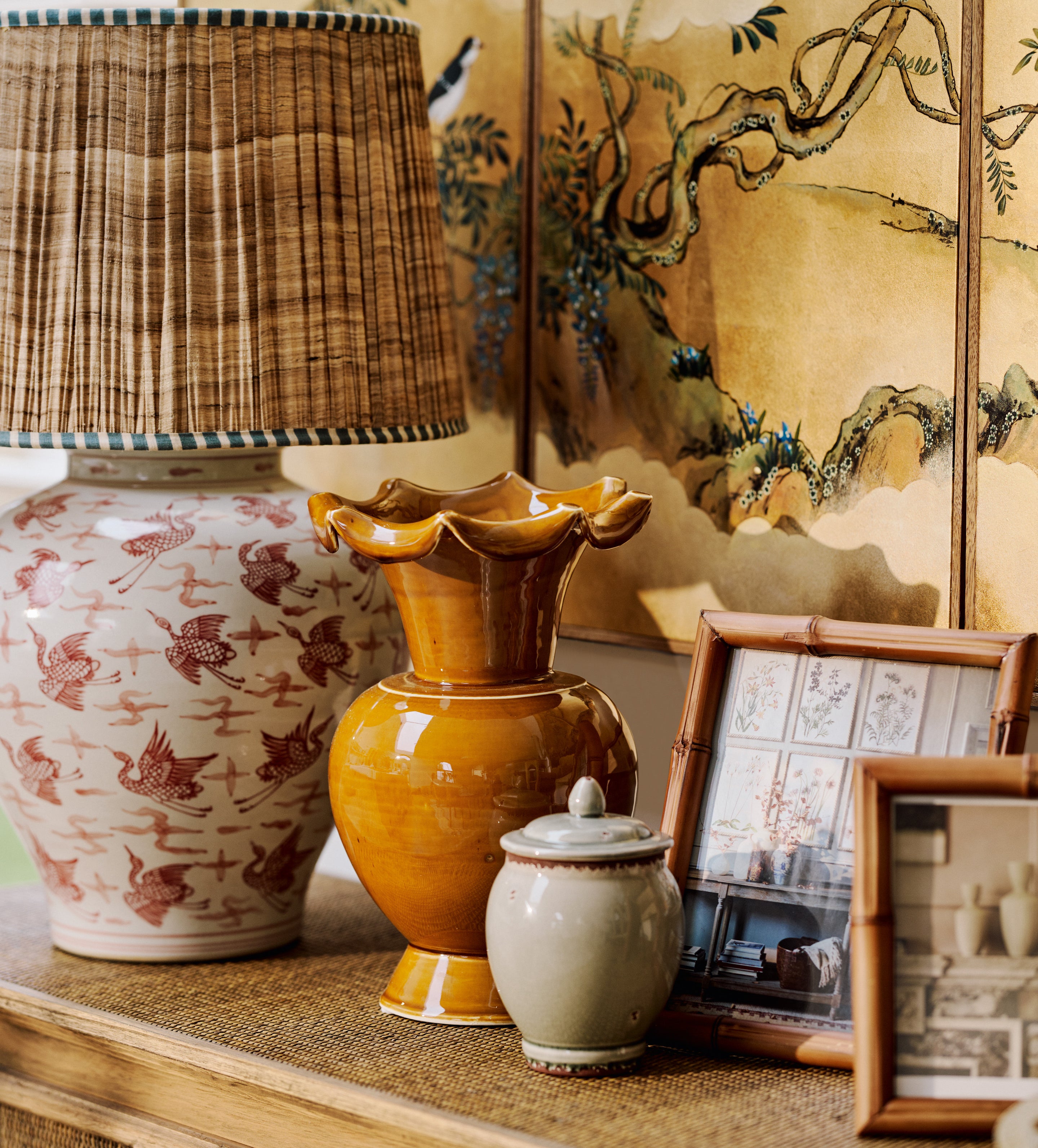 Style your surfaces with the timeless charm of the Eleni Vase. Crafted from ceramic, its scalloped rim and hand-glazed mustard finish make it a standout decorative accent for any space.