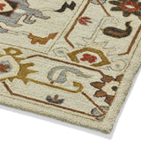 The Homar is an addition to our collection of Persian-inspired rugs with bold abstract botanical motifs on a neutral ground. The piece is hand tufted, which is a weaving technique that combines ancient skills with modern tools. It involves using a canvas, a tufting gun, and wool strands that are pushed into the base. After weaving, the rug is washed and backed to secure the tufts and a cotton secondary backing is applied for a final protective finishing. Due to the artisanal craft process, each piece will have individual characteristics that add to their charm.