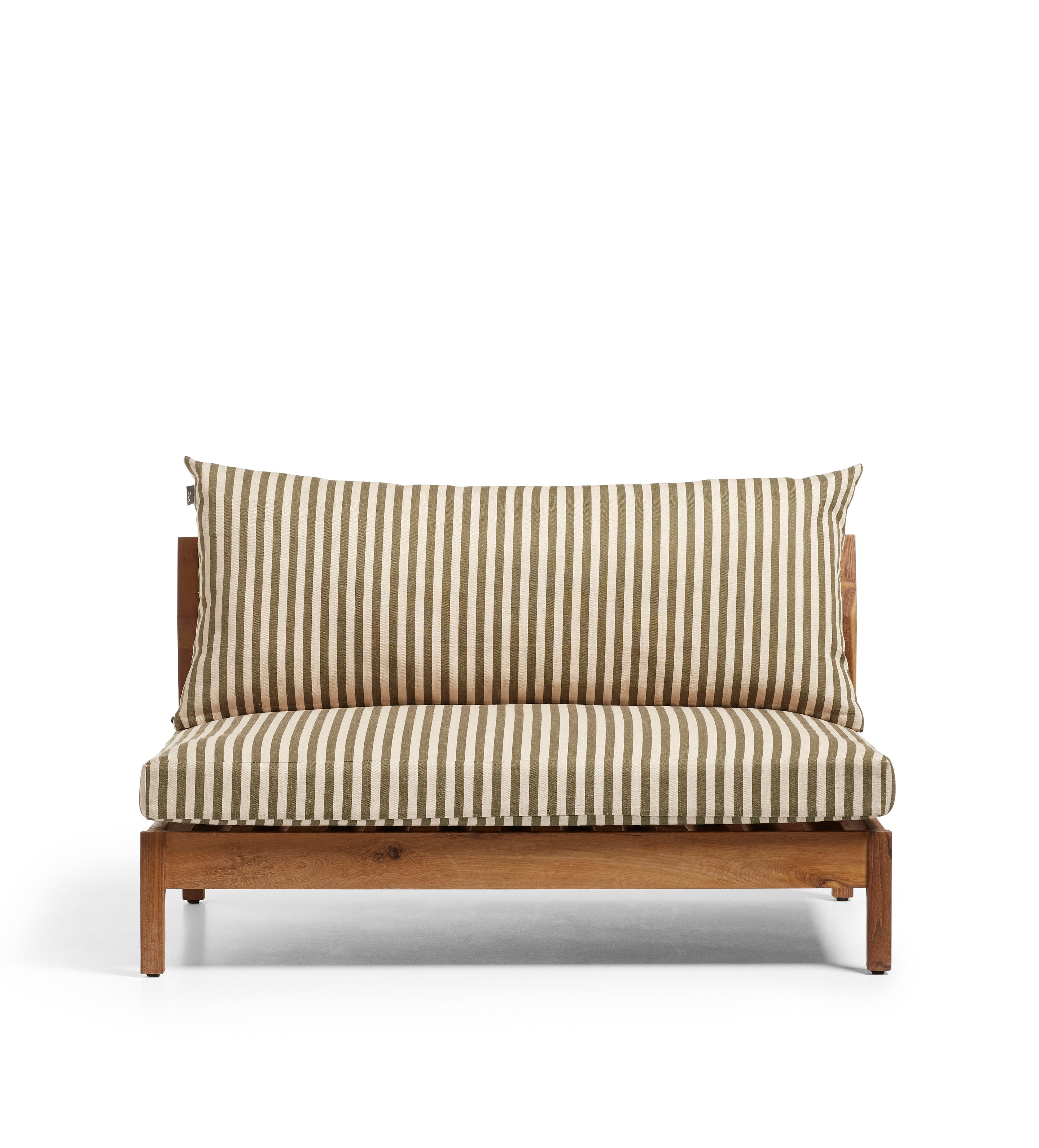 Inspired by the olive tree, the Olivo Wooden Corner Extension brings a touch of Mediterranean living to your outdoor space. Crafted from solid teak wood and topped with printed stripe woven cushions, its modular design allows you to create a layout to suit your space. The playful Olive stripe makes this a statement piece for any terrace or garden.