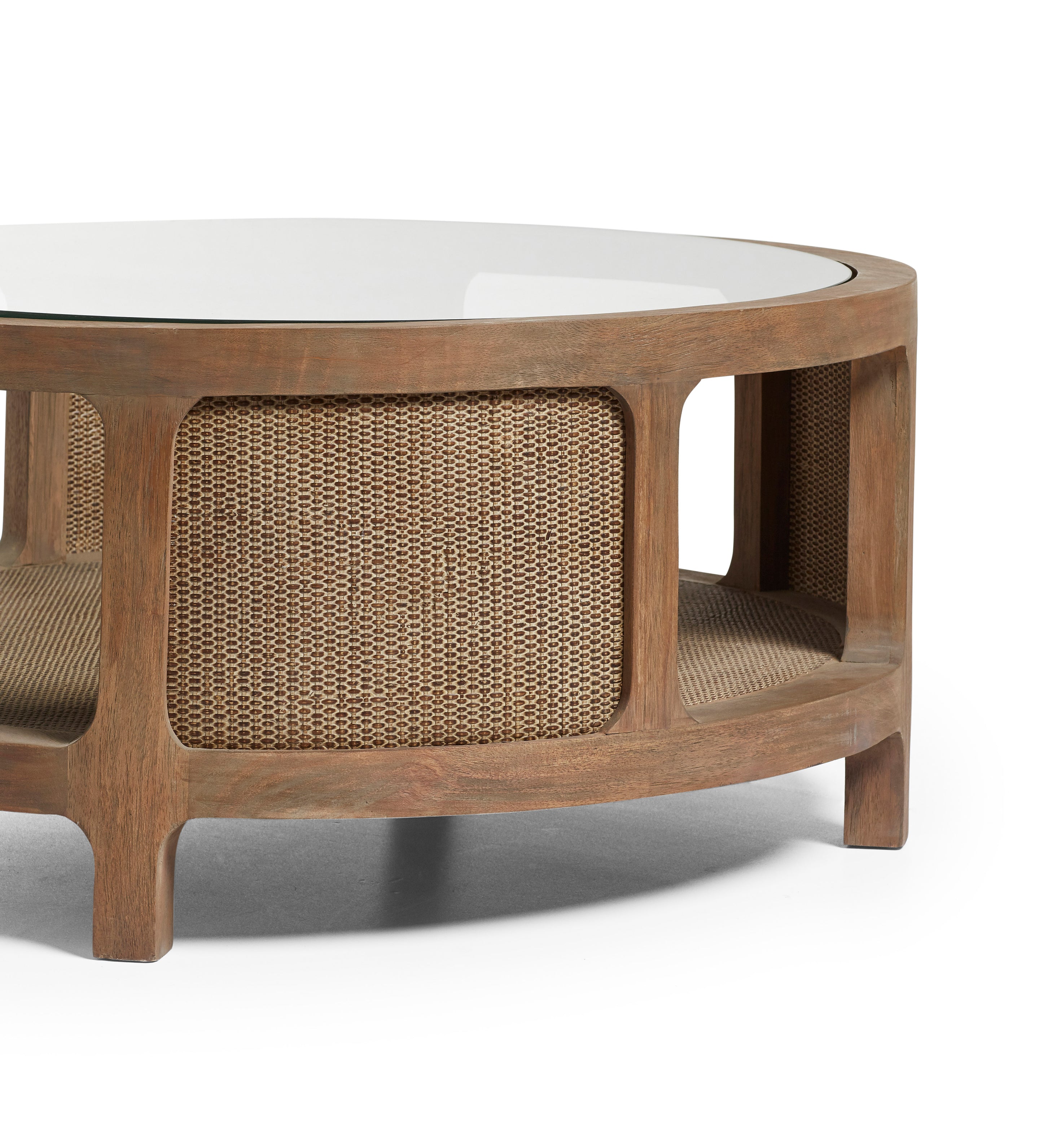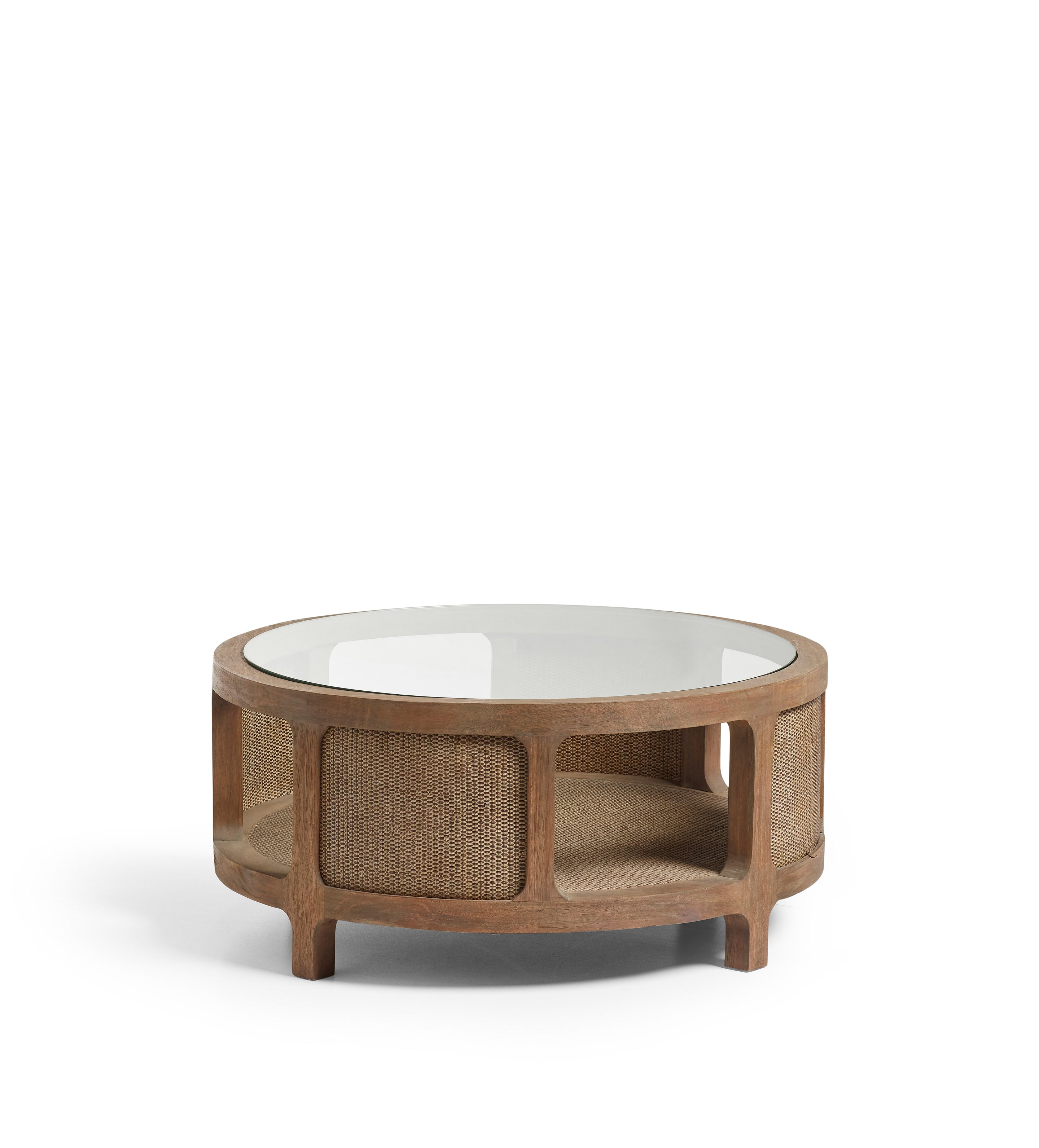 The Remey Coffee Table is crafted from versatile bayur wood, tempered glass and inset rattan surfaces. The practical bottom shelf is ideal for displaying books, ornaments or everyday essentials.