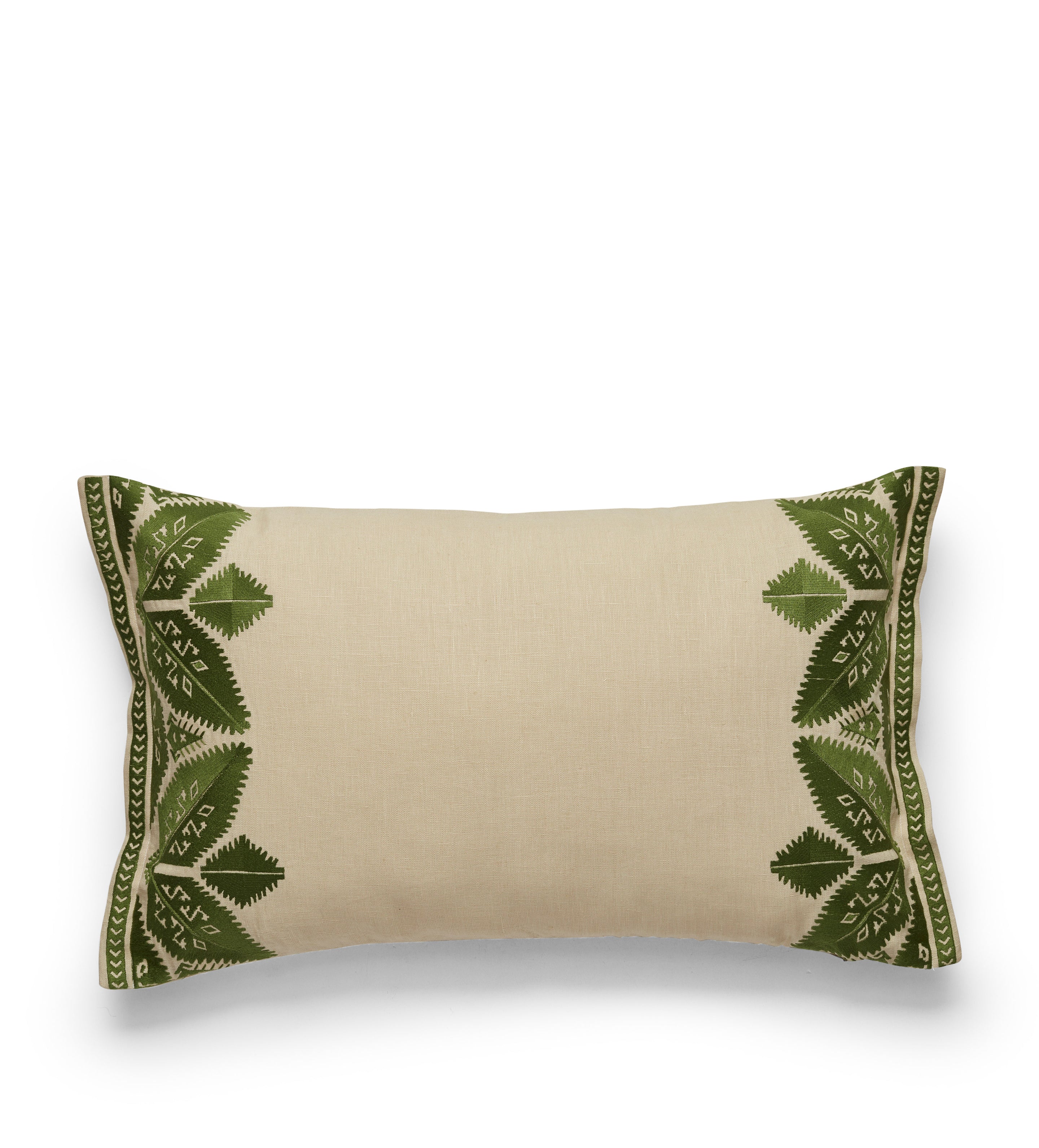 Named after the experimental gardens on the outskirts of Athens, the Sparoza Cushion Cover in putting green brings a botanical influence to any space. Crafted from 100% linen, the single-sided and self-piped design features machine-embroidered curled Greek foliage, evoking a sense of calm.