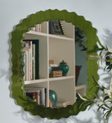 Our Talasa Mirror is named after the Greek word for 'sea', in homage to its hand-carved undulating edge that resembles a wave. Originally based upon an antique, we have expanded our range of Talasa Mirrors to include this more petite version hand painted in a high-gloss Spruce green lacquer for a luxuriously shiny look. Artisanal brushstrokes add depth to the tones for anything but a flat finish. Due to the crafting process, each piece will have individual characteristics that add to their charm.