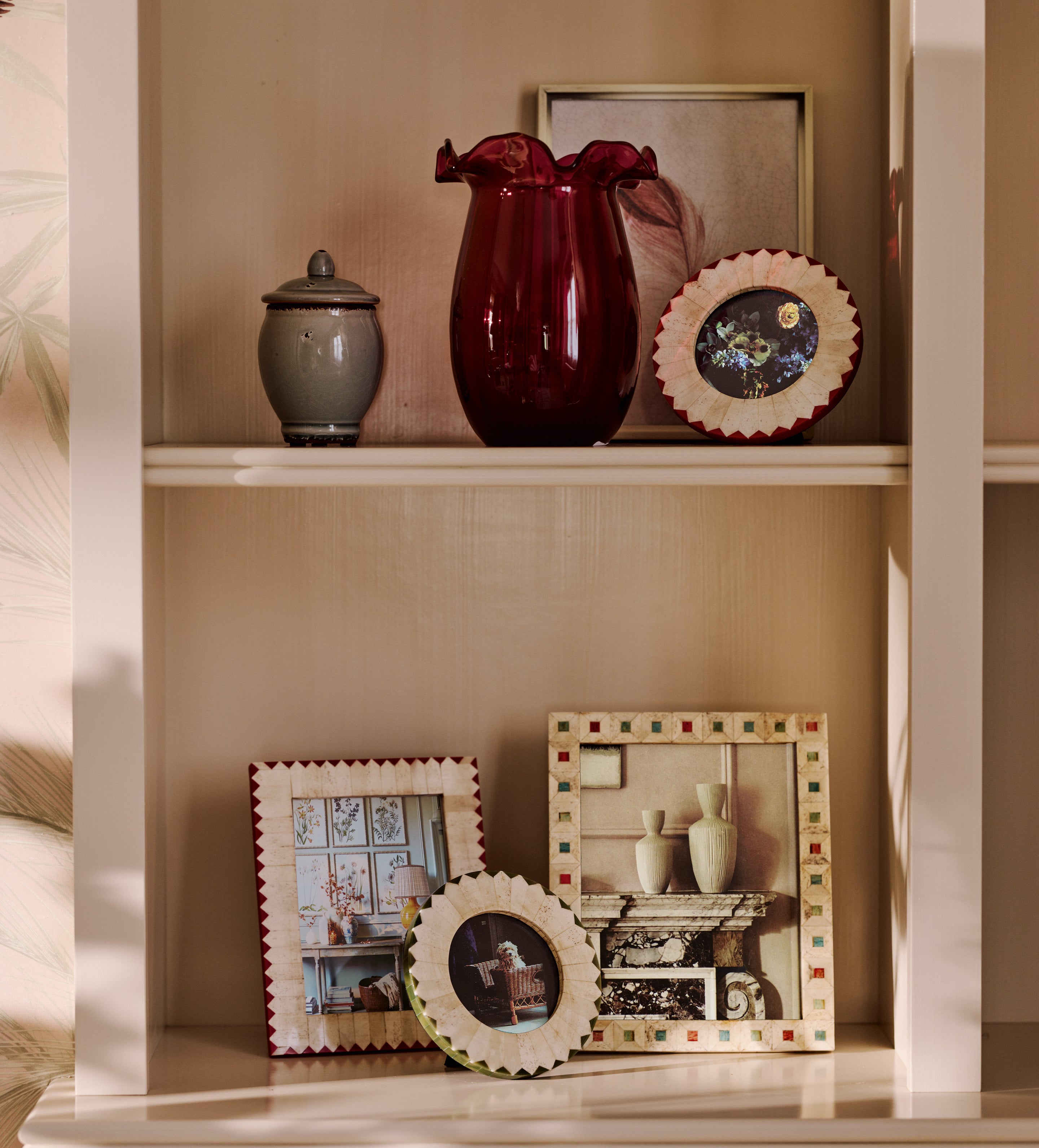Add a touch of artisanal elegance to your home with the Visus Bone Photo Frame. Hand-cut and finished by skilled artisans in India, each piece of bone is carefully placed by hand in a triangular pattern. Measuring 6x8, it’s perfect for showcasing your favourite photographs.