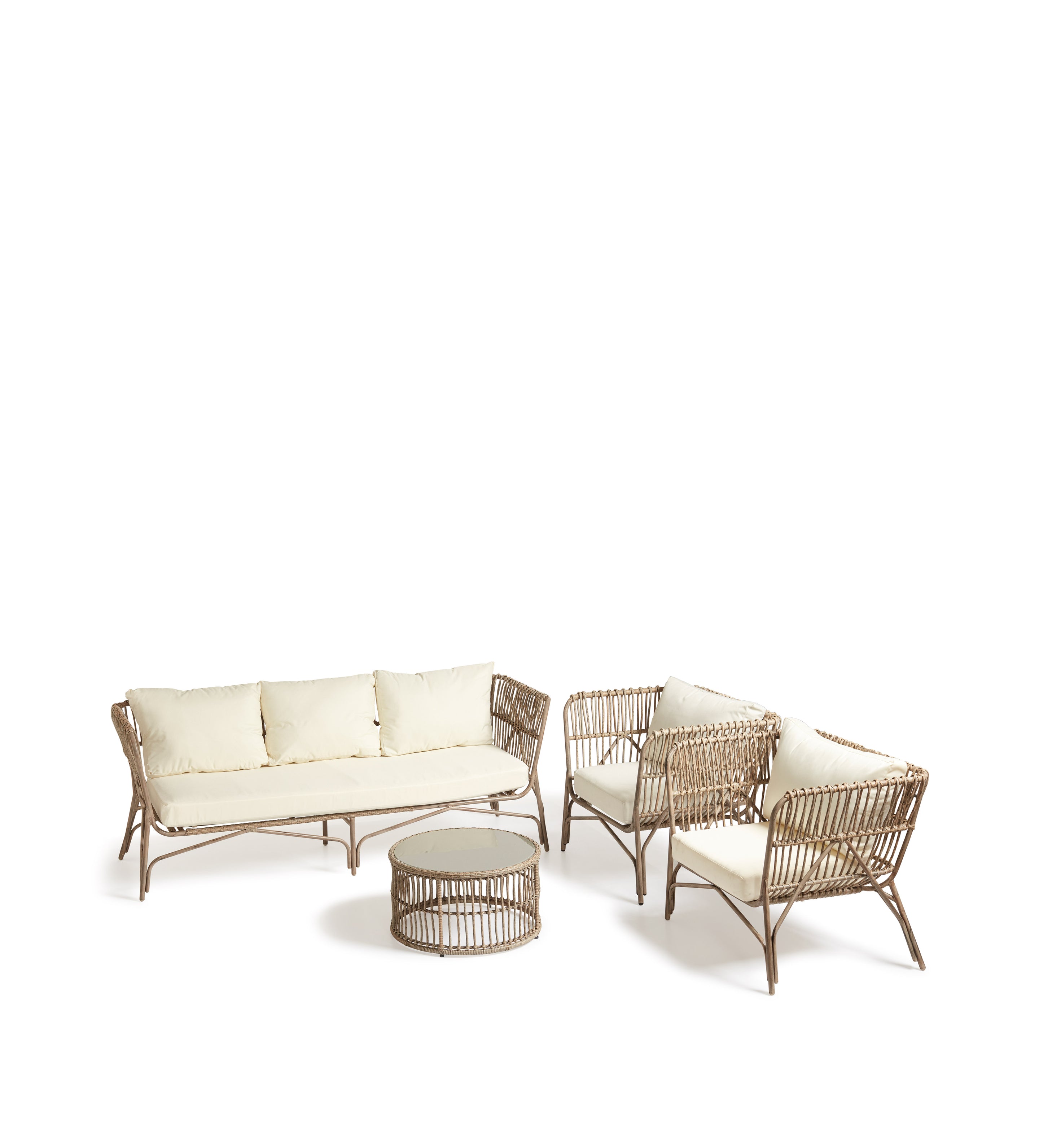 Made to match our Weybourne seating collection, this round coffee table is built from steel and woven with realistic-looking synthetic rattan. This is where it takes its name from: Weybourne is a coastal village in Norfolk, an area known for its vast, windswept reed beds, which are used in everything from thatching to basket weaving. The table is topped with a tempered piece of glass which is back painted so that it's not transparent.
