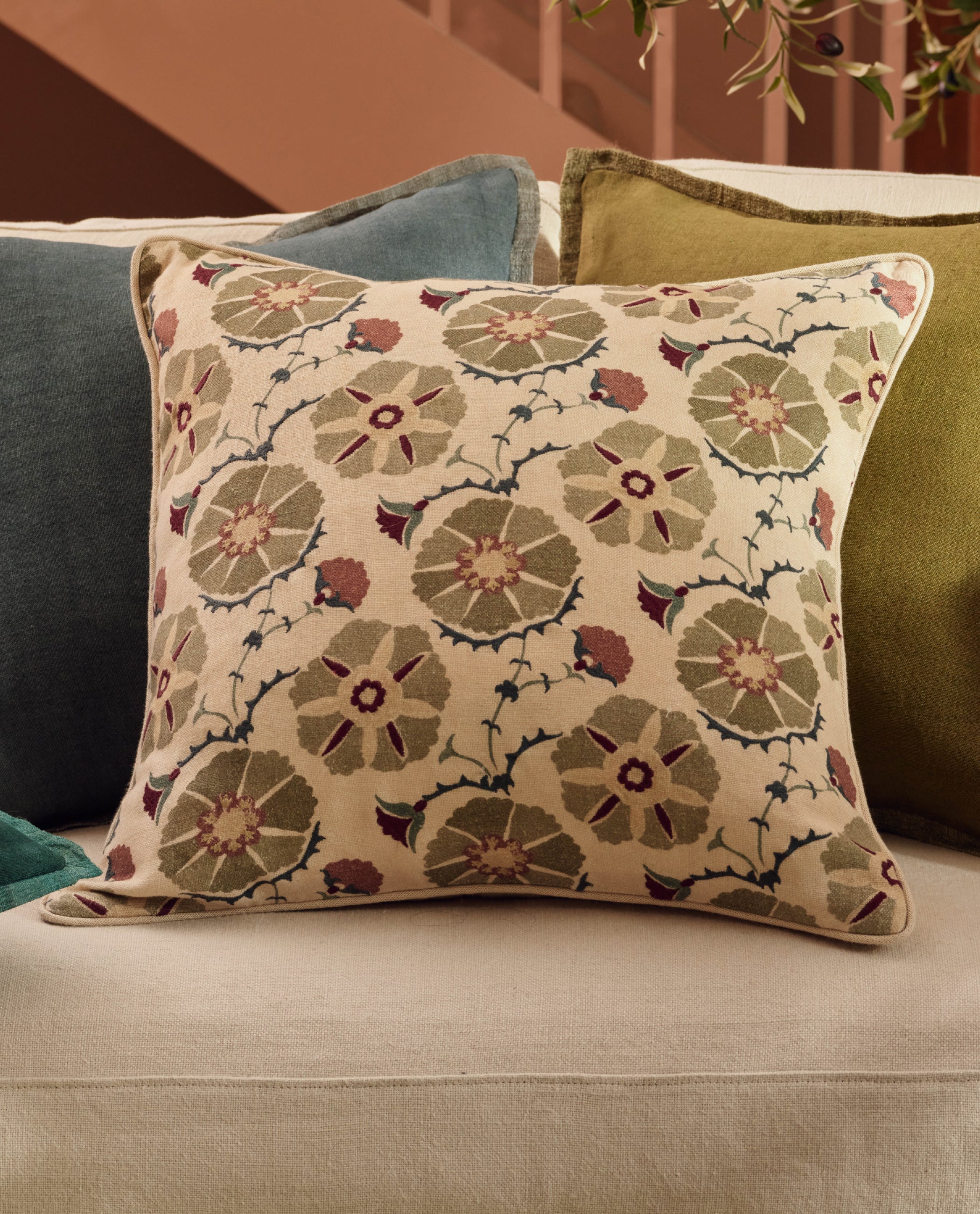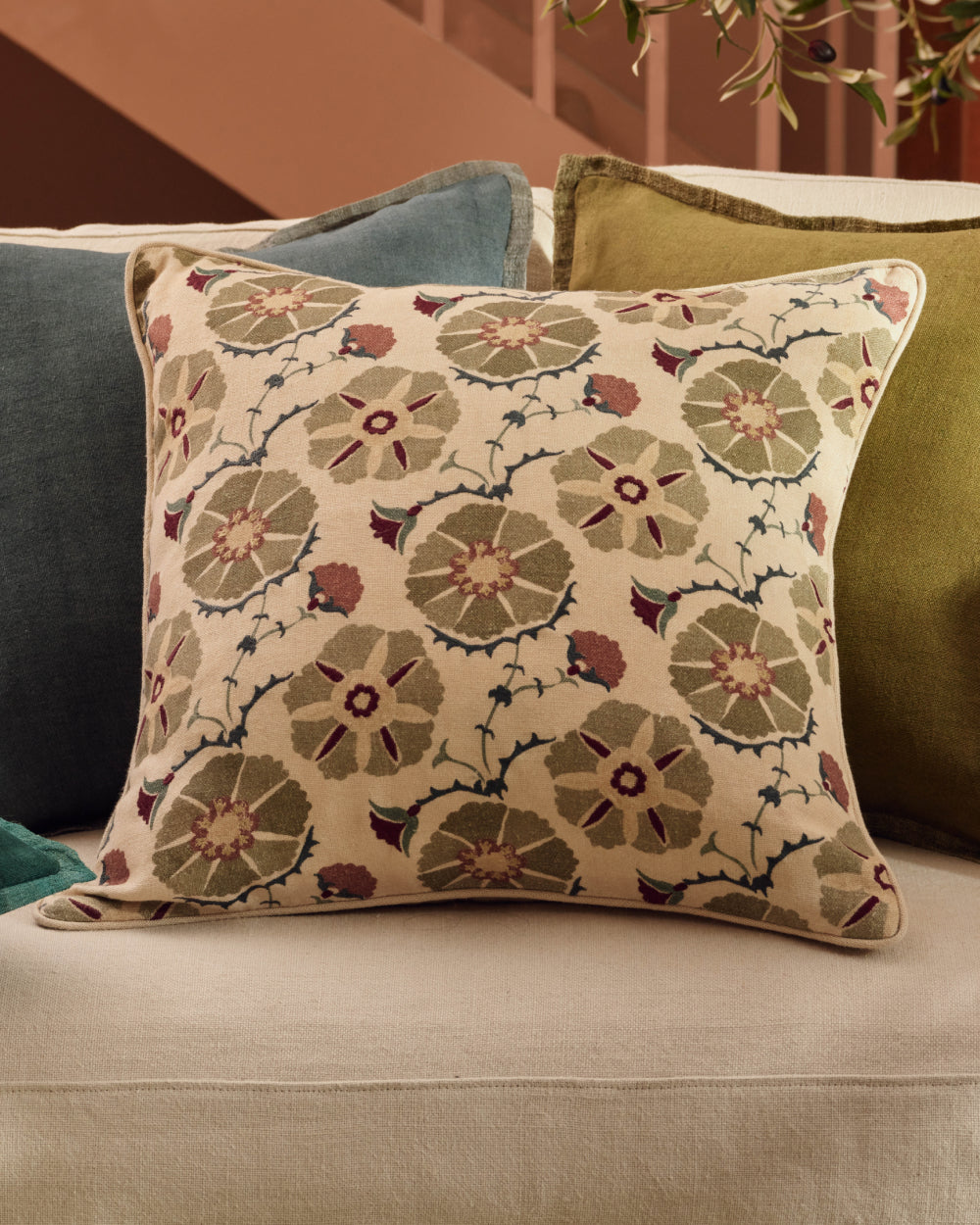 With any style, design or trend that you’re trying for the first time, the best route to testing it out in your home is through your accessories. These smaller details are ideal for sampling a new style, as it’s a more affordable (and sustainable) way to try out a look without it impacting the overall aesthetic of your space. This is particularly useful for those looking for simple floral room décor ideas, as it’s a way to inject a pop of print without it taking over the look. Florals and soft furnishings go hand in hand, so look to cushions and throws to inject a dainty print into your home. Our Stonewashed Linen Cushion Covers with Fringing, for example, come in soft and fresh colours such as hemp, apricot, and natural, making for a charming addition to a sofa or armchair. Our Sheki pattern, on the other hand, presents a bolder style, with large printed florals and embroidered vines adding textural detail; drape the throw over the arm of a sofa or across a bed for true statement style.