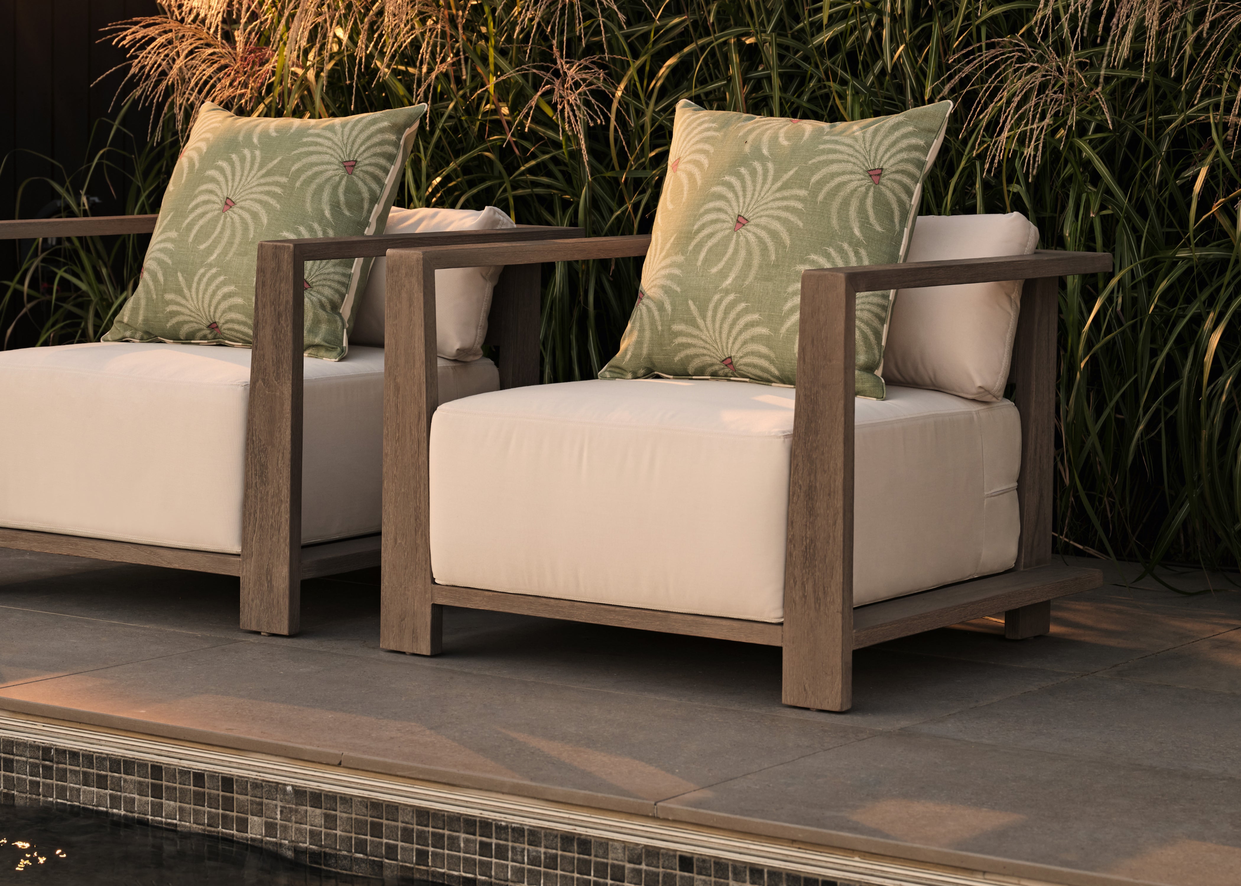 Clean lines are characteristic of minimalist style, so look for opportunities to weave these into your design. Favour boxy planters over curvaceous styles, seek rectangular or square dining tables over round, and look for coffee tables, seating or side tables with equally linear silhouettes. Our Pierre Coffee Table is perfect for this aesthetic; cast from hand-moulded concrete, it’s offers a smart and commanding look. Our Swanmore Range is also ideal for those seeking a linear style; the angular wooden frames and smooth teak wood make these pieces perfect for minimalist outdoor spaces.