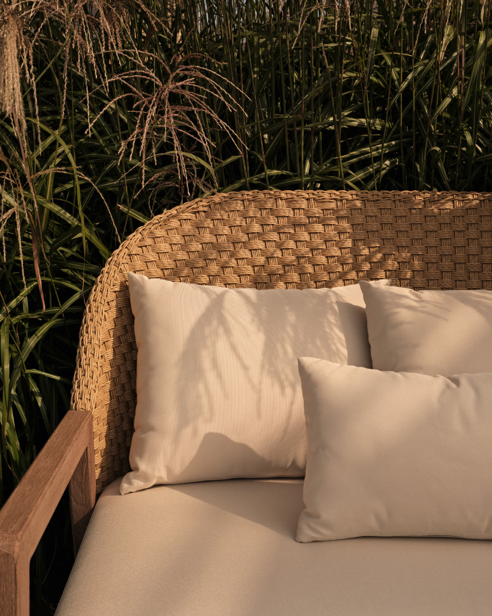 Texture is key when it comes to adding warmth and interest to minimalist interiors, and the same goes for outside spaces too. With colour taking a backseat, materials are your go-to for creating character and personality. Think about the material types that already exist in your garden, and try to select furniture and accessories that add a pleasing contrast – if you have wooden decking, for example, why not spring for a metal or concrete-style seating arrangement? For those with paving stones, a wooden dining table and synthetic rattan chairs will make for a satisfying juxtaposition. Accessories, too, will help to create a layered effect – an indoor/outdoor rug in a jute-style weave will add texture underfoot, while stone planters or ceramic vases will create tactile appeal.